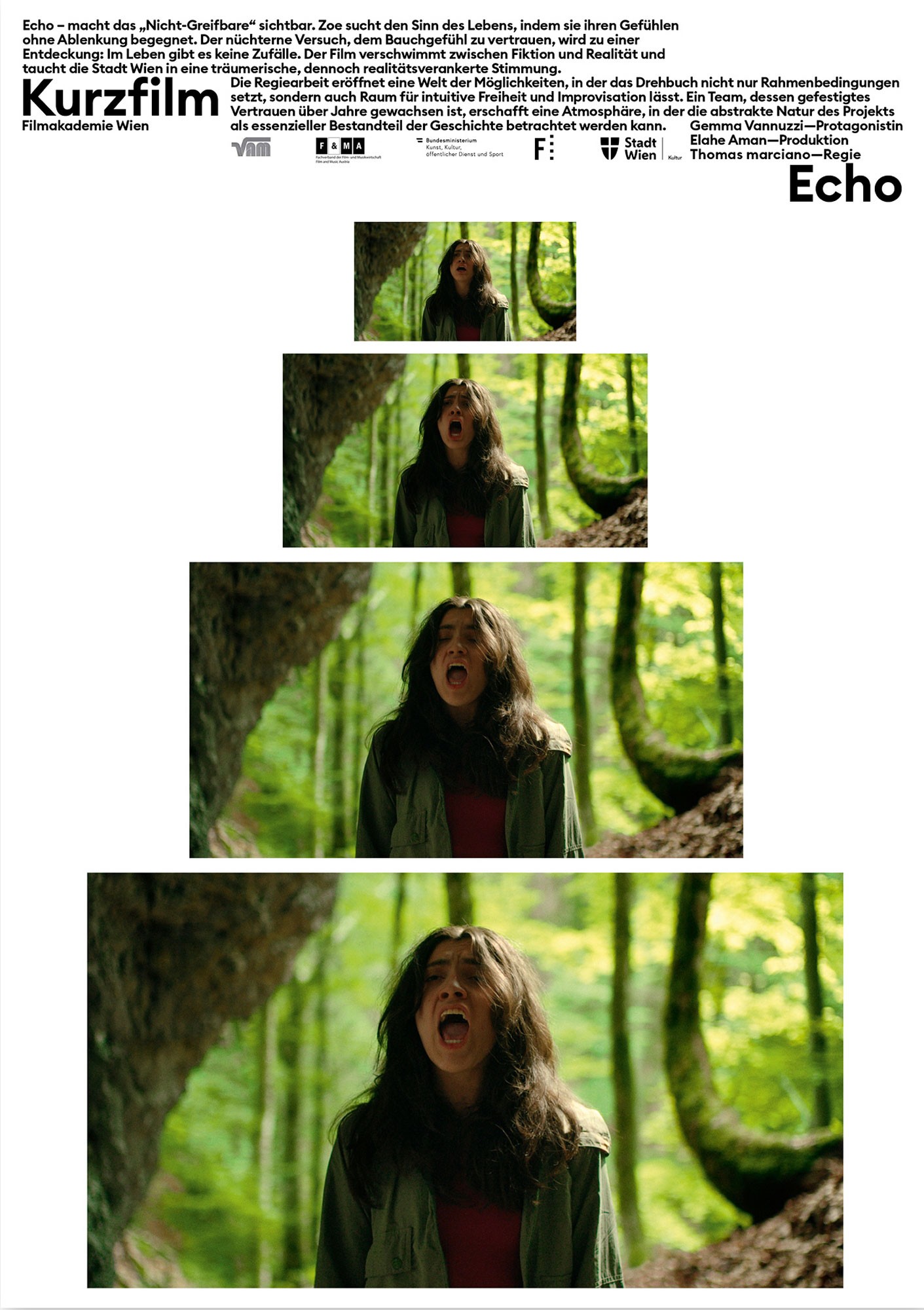Grafik: Lukas Hoffmann, Kurzfilm Echo, Serie von zwei Plakaten, Österreich © Lukas Hoffmann/100 Beste Plakate e. V.