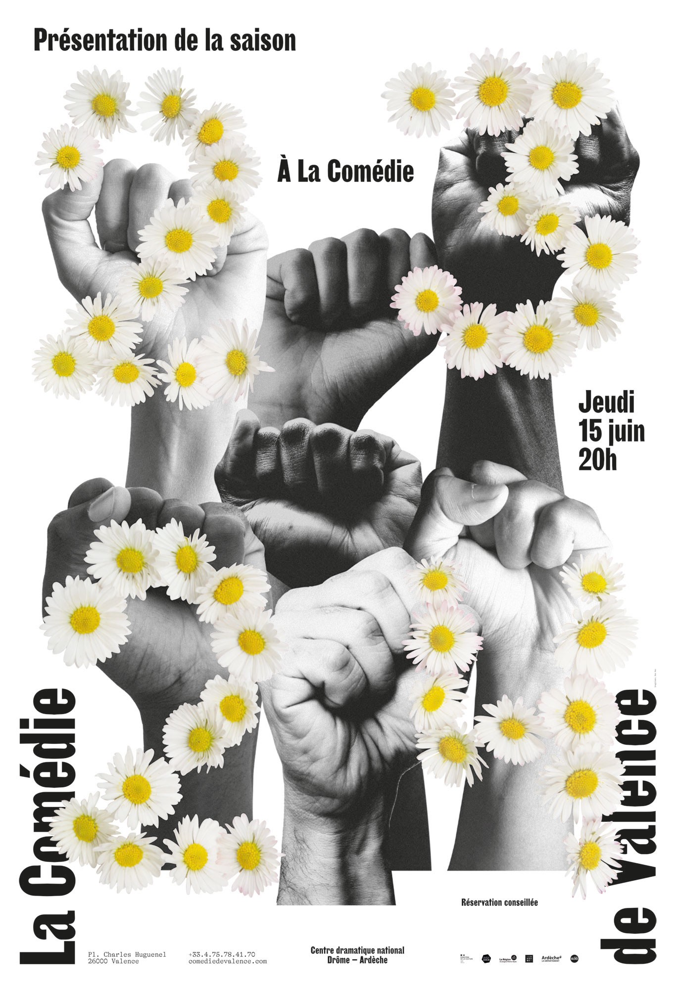 Grafik: Thuy-An Hoang, Xavier Erni, Estelle Piguet, Atelier: Neo Neo, La Comédie de Valence 23–24, Aus einer Serie von vier Plakaten, Schweiz © Neo Neo/100 Beste Plakate e. V.