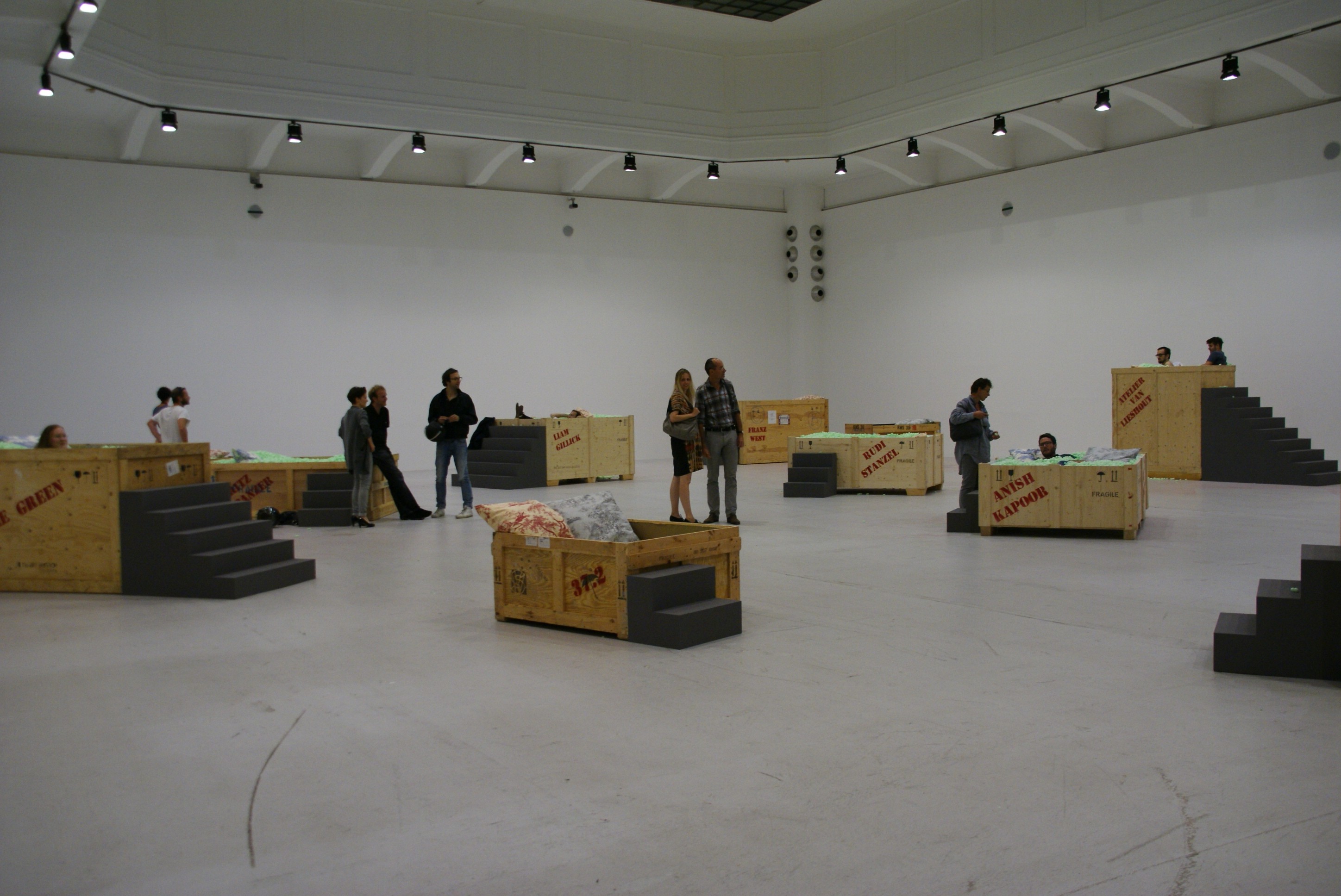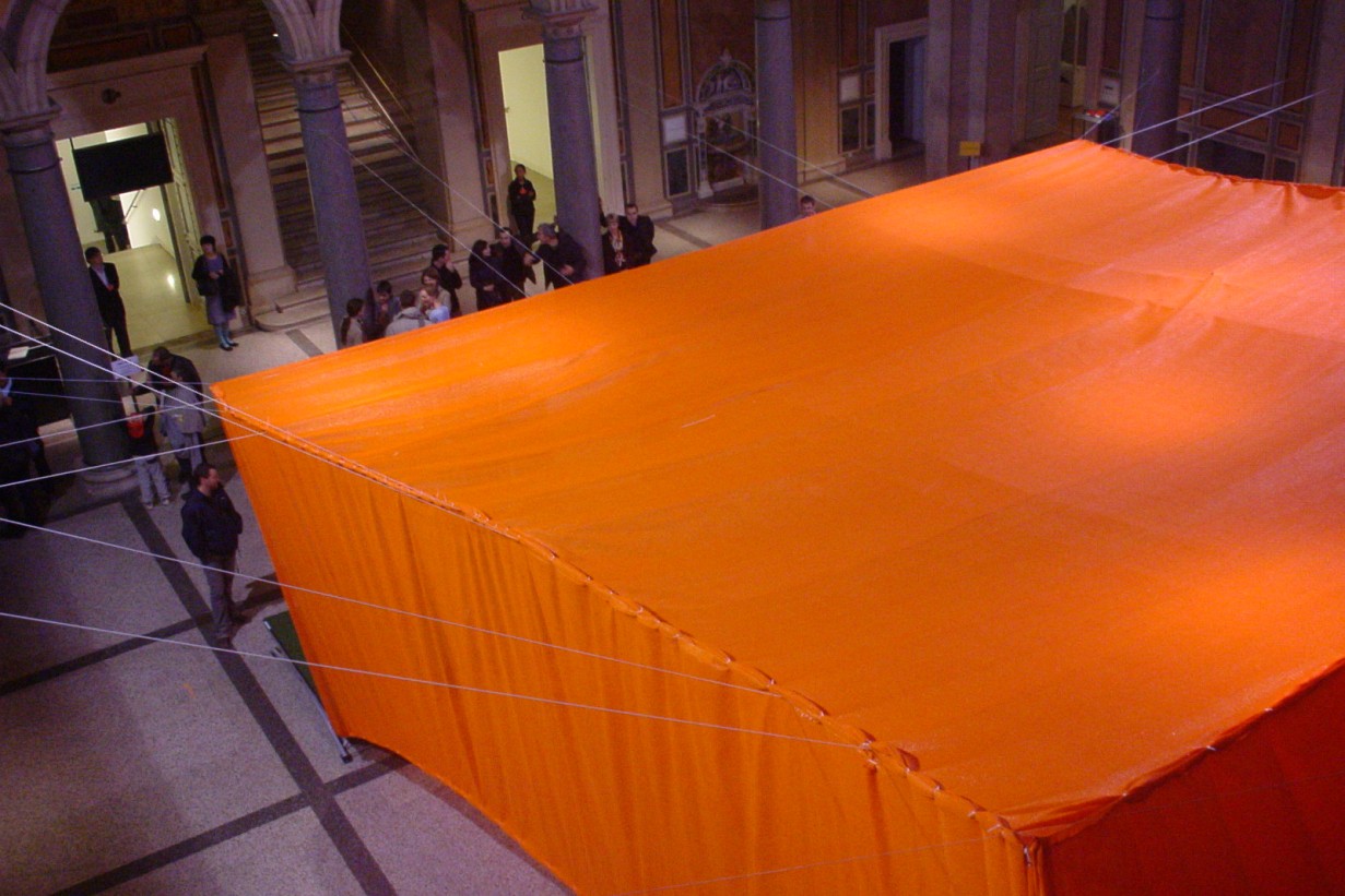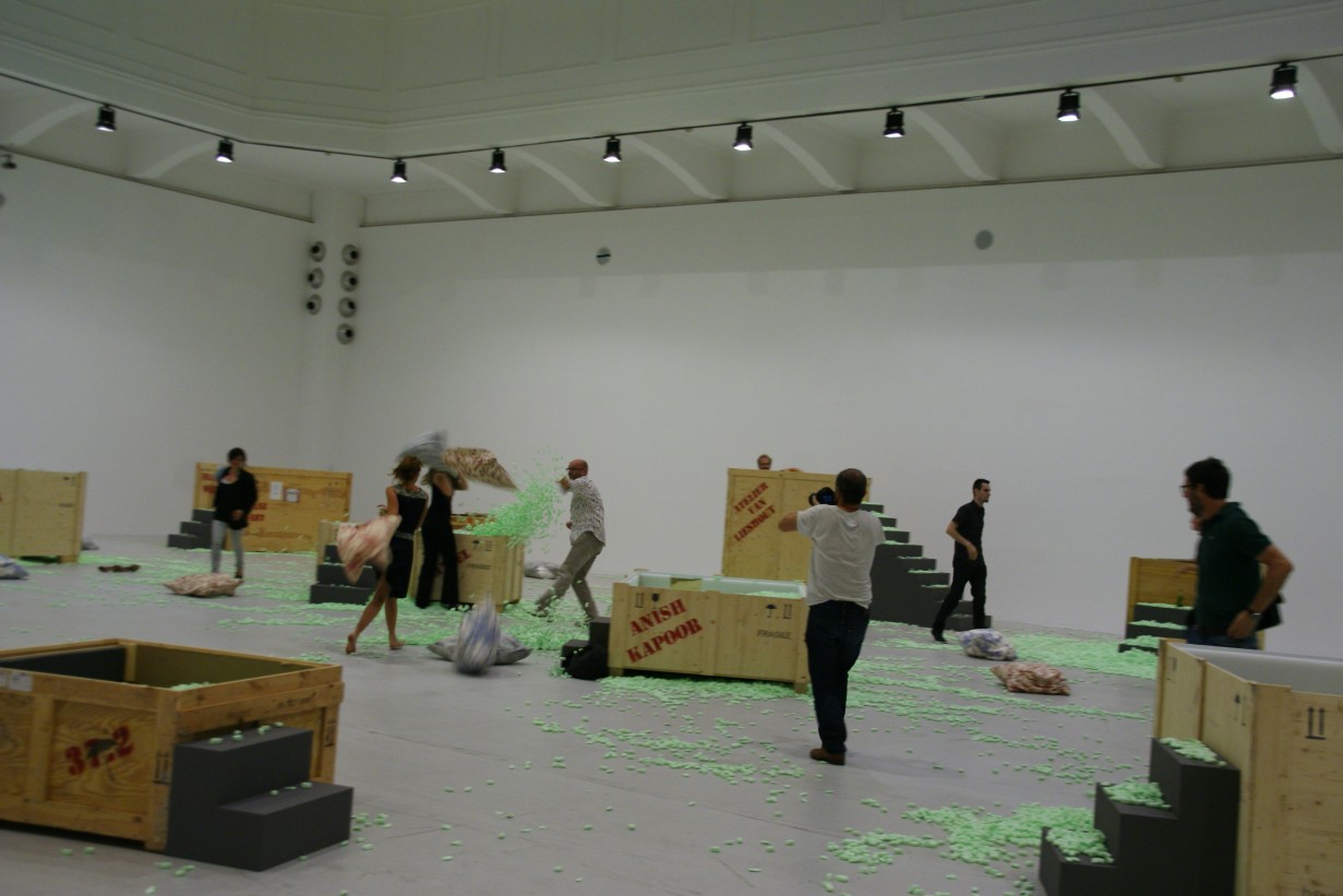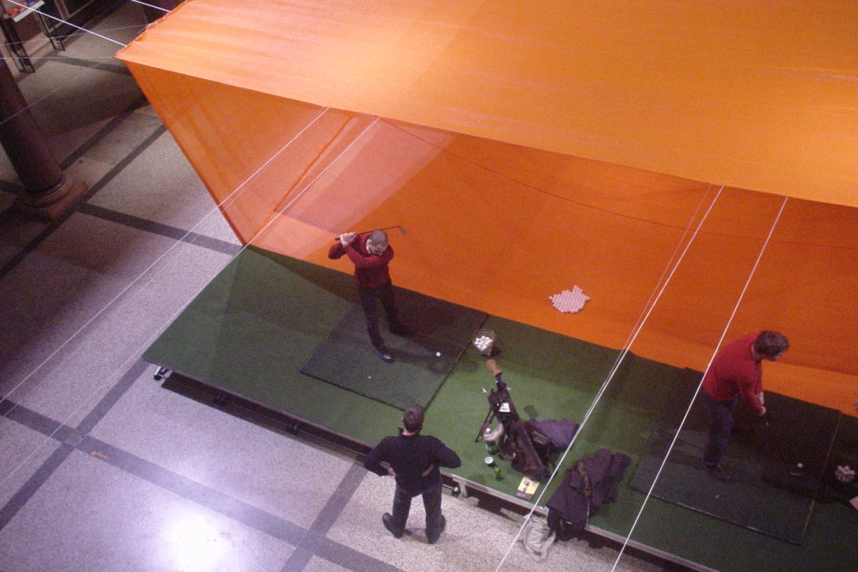 >> Installation als spezifisches Konzept des künstlerischen, designerischen oder architektonischen Arbeitens trägt in ihrer raumgreifenden Qualität und den daraus abzuleitenden Erlebniselementen ein großes performatives Potential in sich, das in der Lage ist, einen originären und individuellen Kontext zu schaffen, innerhalb dessen Themen und Fragestellungen interpretiert werden können. Die performative Installation (in Bezugnahme auf den von Nicolas Bourriaud geprägten Begriff der Relational Aesthetics bzw.Social Practice, wie u.a. Rirkrit Tiravanija in seinen Social Cooking Performance-Installationen zeigt) bindet die Ereignishaftigkeit der Performativität in die Materialtät einer Installation, im Sinne einer Simultaneität von Handlung und Erfahrung bzw. die Ereignishaftigkeit der künstlerischen Produktion (als Prozess) wirkt in der Installation weiter.
