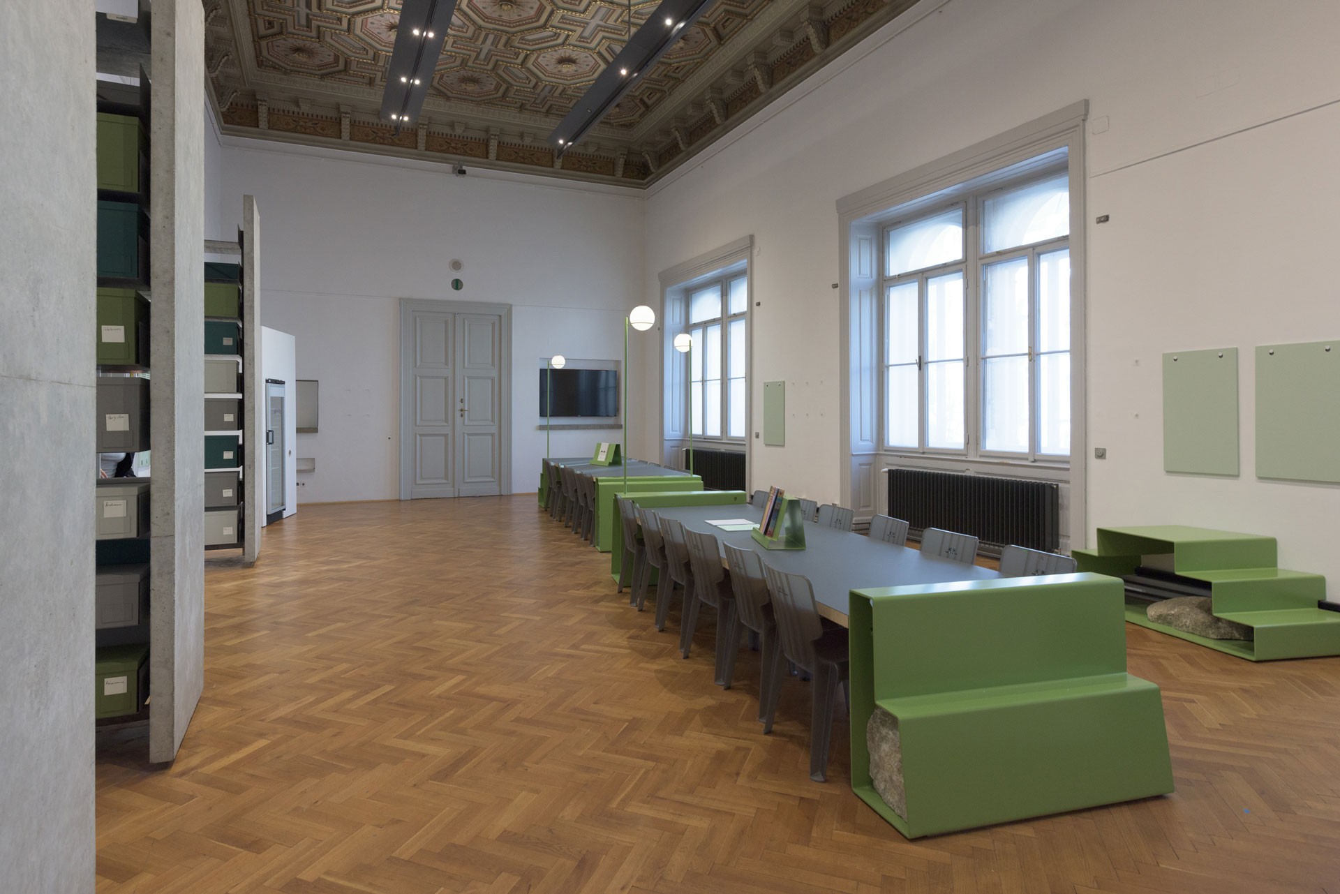 Der Raum diente ursprünglich als Sitzungssaal des Kuratoriums und wurde später als Direktion genutzt. Aus der Amtszeit von Peter Noever stammen die markanten, von ihm gestalteten Regale aus gegossenem Beton, die heute zahlreiche Vermittlungsmaterialien in handgefertigten Archivboxen enthalten. 2021 öffnete die Generaldirektorin Lilli Hollein diesen Raum für die Öffentlichkeit.