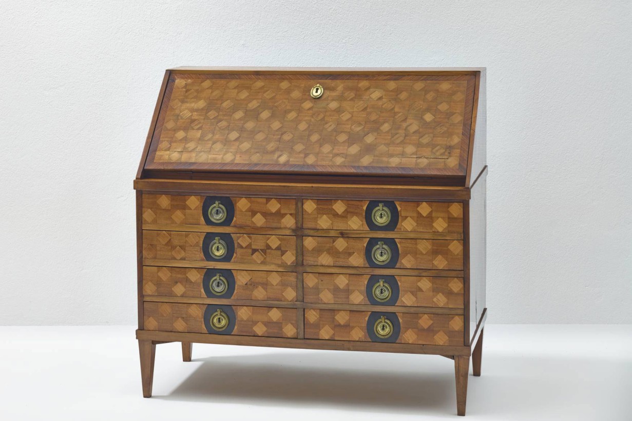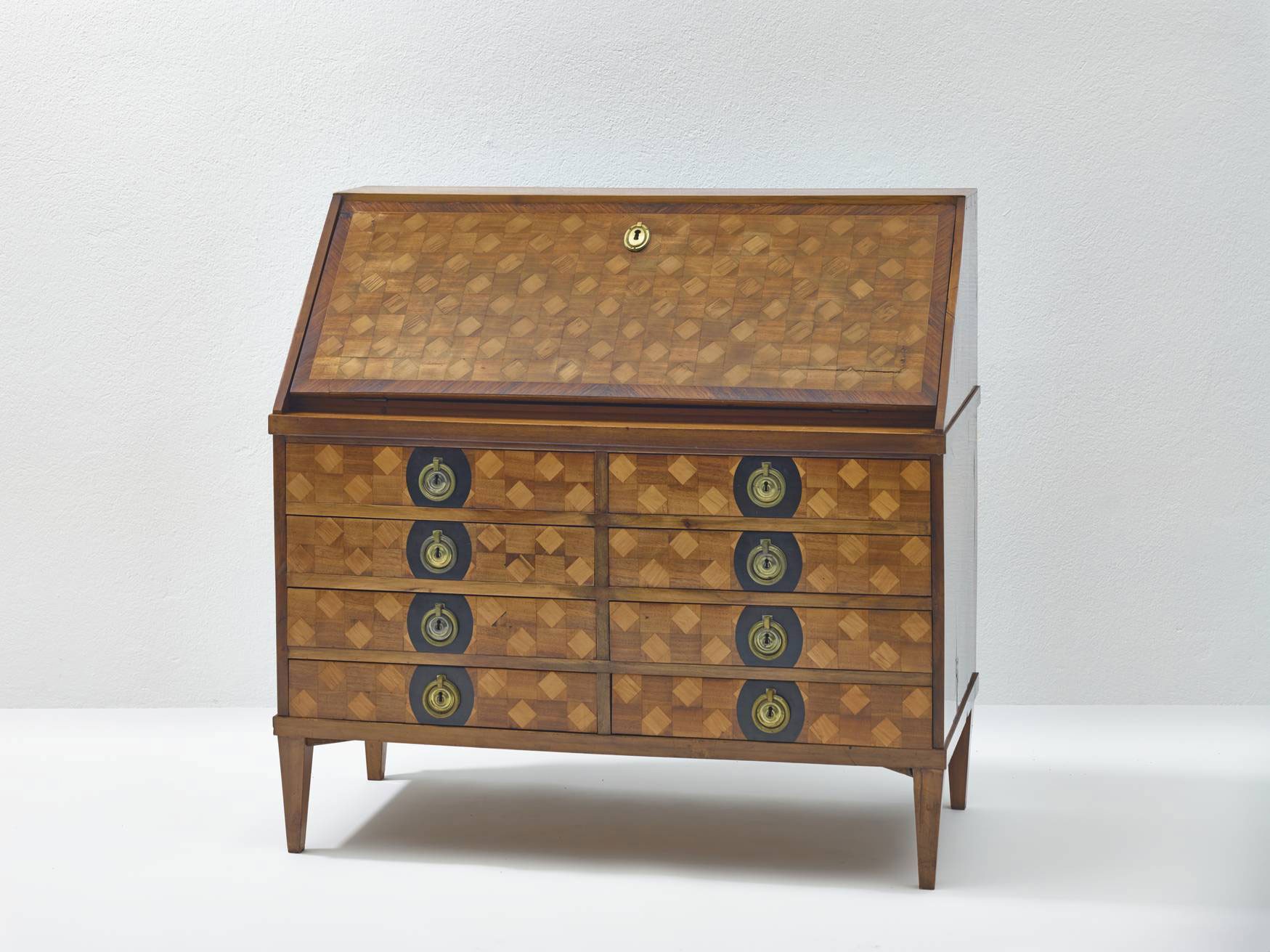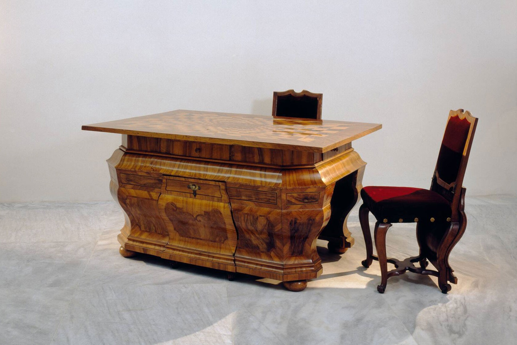 One of the most important focus points of the MAK Furniture and Woodwork Collection are the pieces of furniture from the Baroque and Rococo eras. Chairs, tables, cabinets, and entire interior designs from the time of Absolutism can be found in the Collection in the ornate and splendid forms typical of this era. The exhibits that are particularly worth seeing include the furniture and marquetry panels presented in the Permanent Collection. They were made in Brussels in the 1770s by David Roentgen for the governor-general of the Austrian Netherlands, Prince Charles Alexander of Lorraine. They are considered highlights of German cabinetmaking.