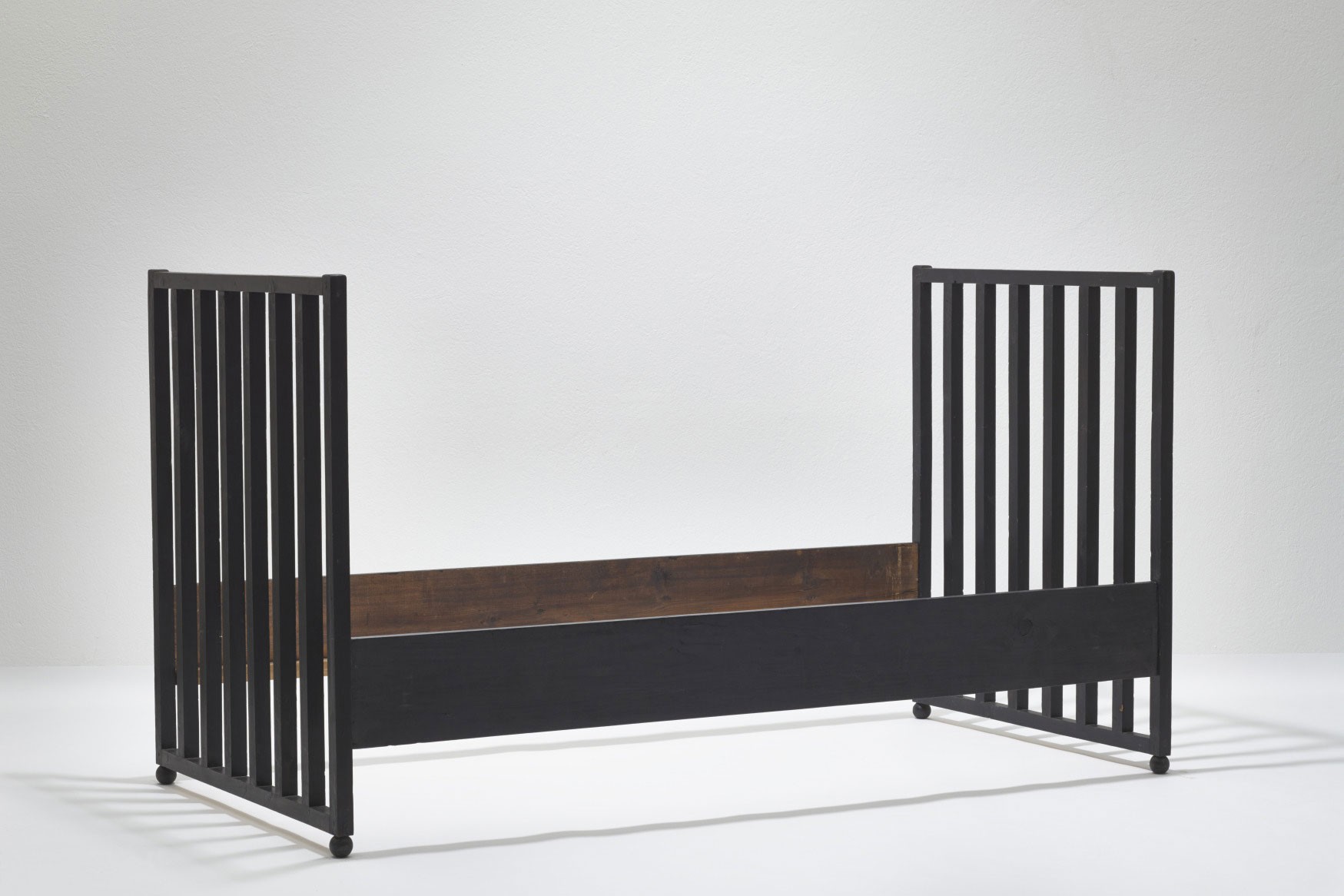 Josef Hoffmann, bed from the bedroom furnishings for the cottage of the Knips family in Seeboden at Lake Millstatt, Vienna, 1903, softwood, stained black, H 2700 © MAK