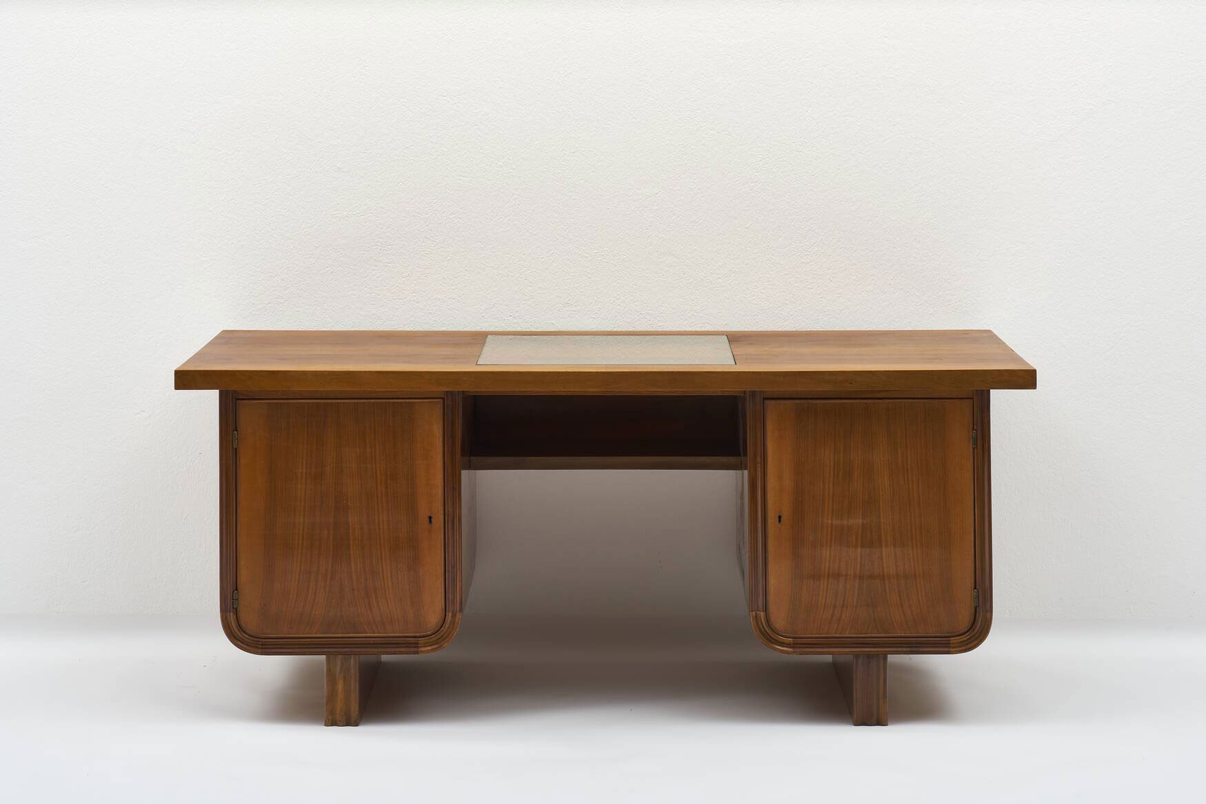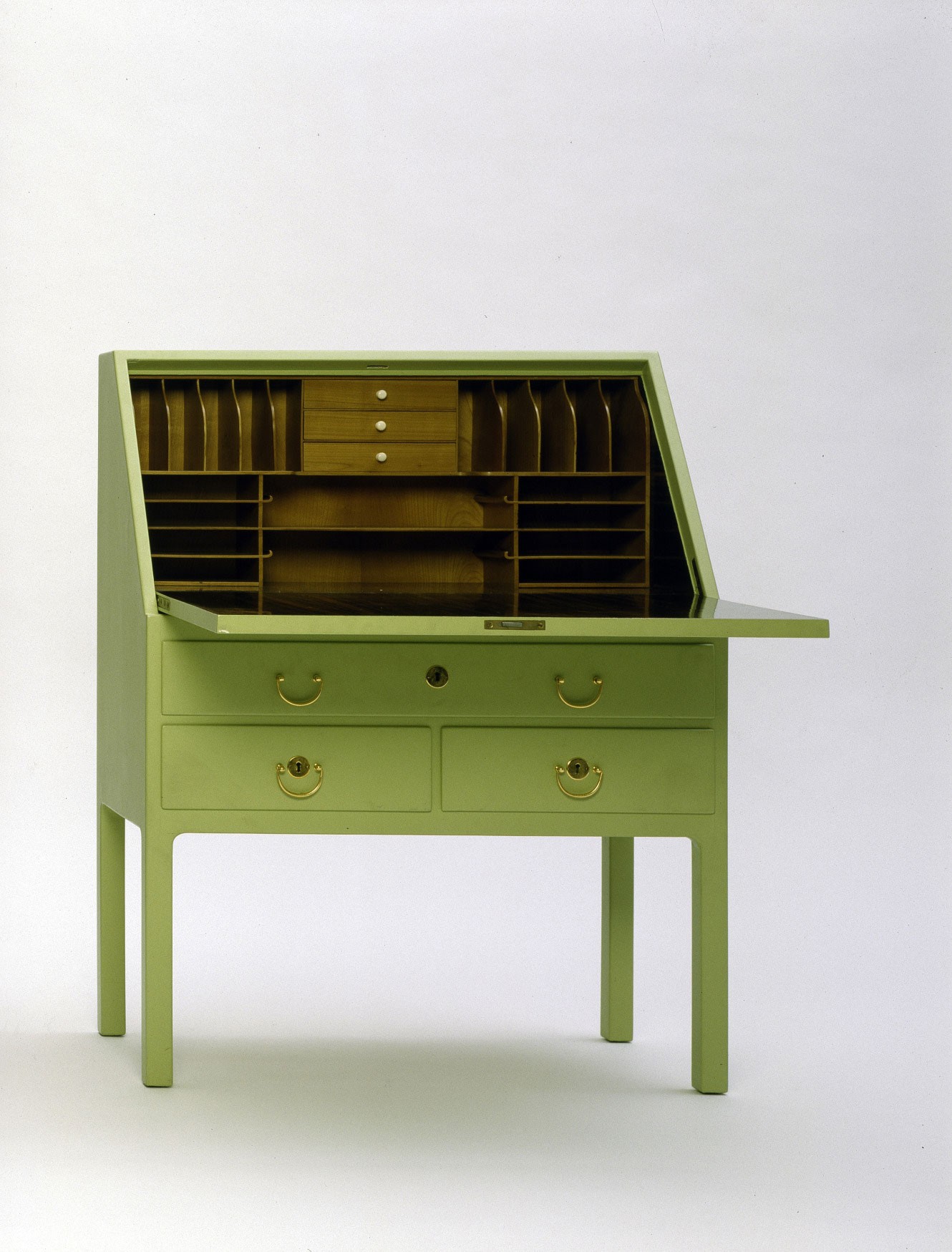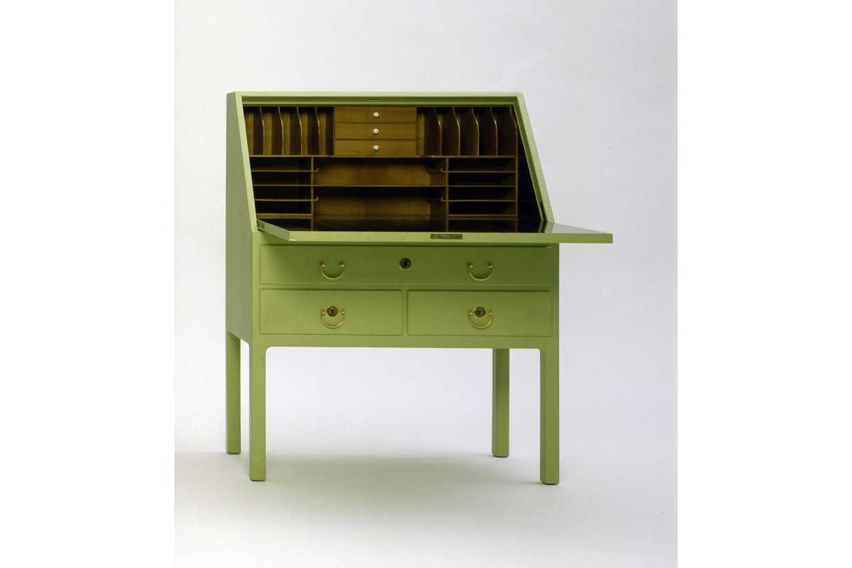 Josef Frank, writing desk, Vienna, ca. 1925, wood, with renewed green rubbing varnish; Makassar ebony, cherry wood, brass, H 2286 © MAK
