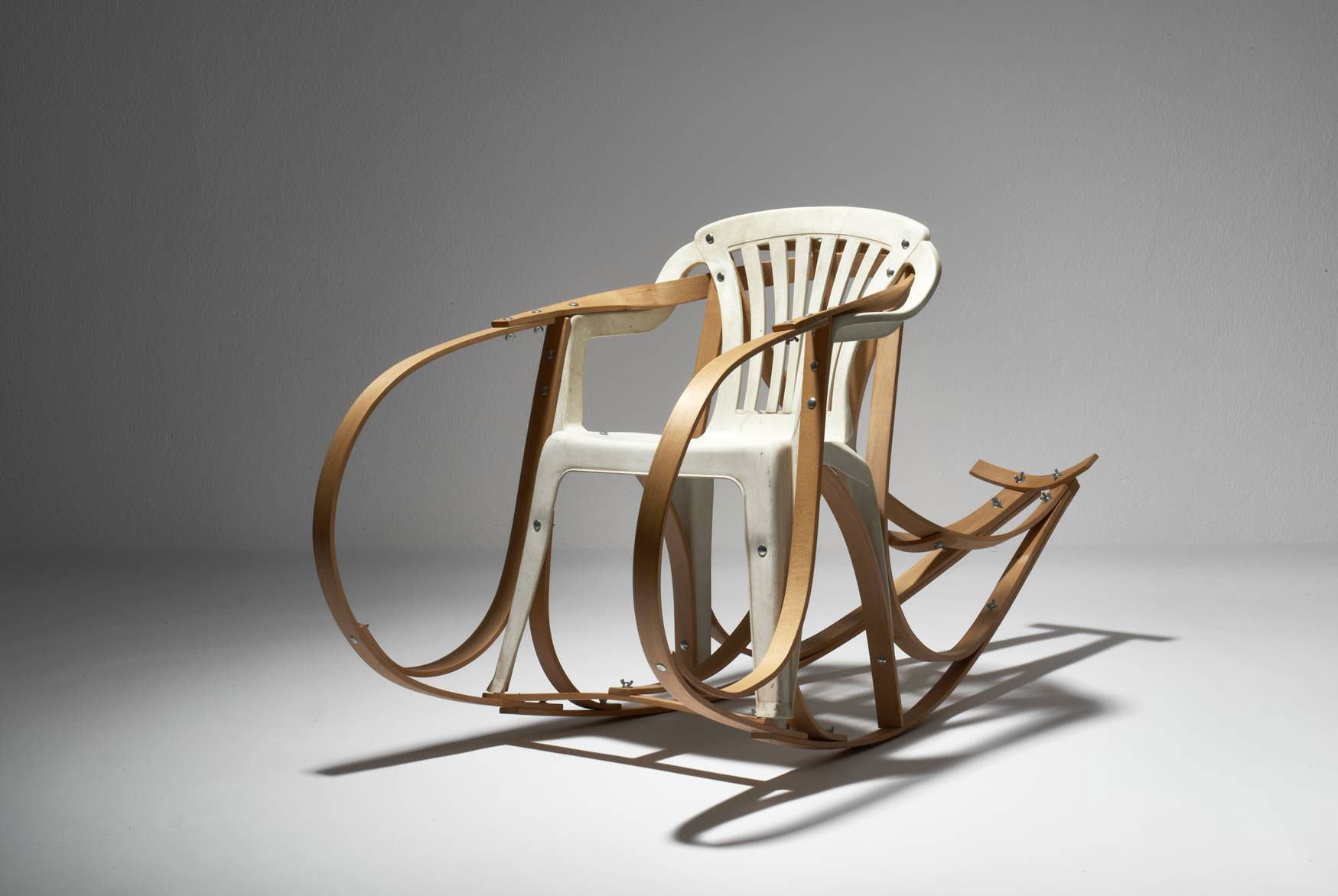 breadedEscalope, rocking chair “Erlkönig,” Vienna, 2011, beech wood, bent; plastic; metal, H 3607 © MAK