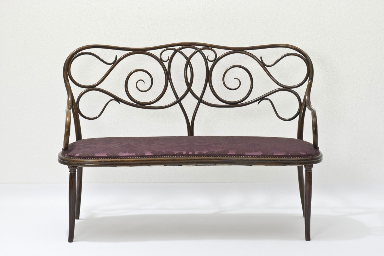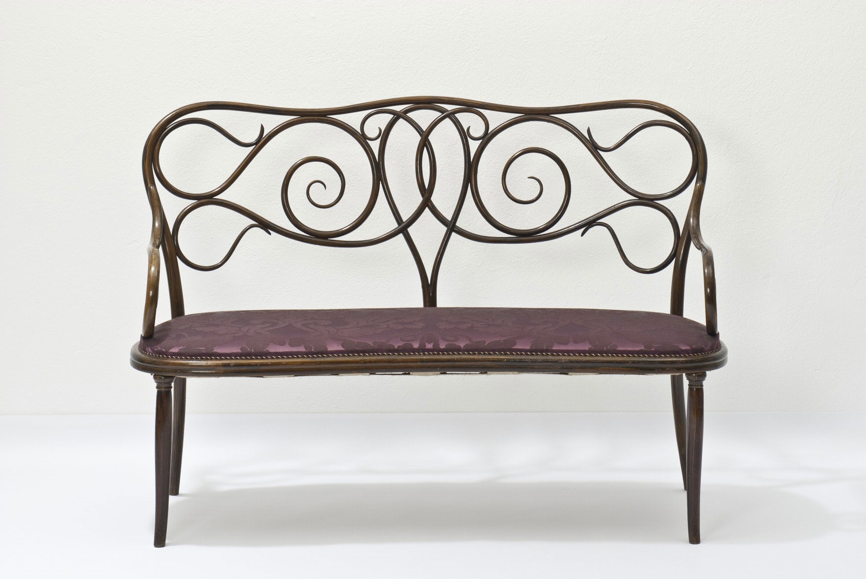 Michael Thonet, sofa, Model No. 4, Vienna, ca. 1850, beech wood, partly laminated and bent, rose wood stain; upholstery with renewed damask cover, H 2978 © MAK