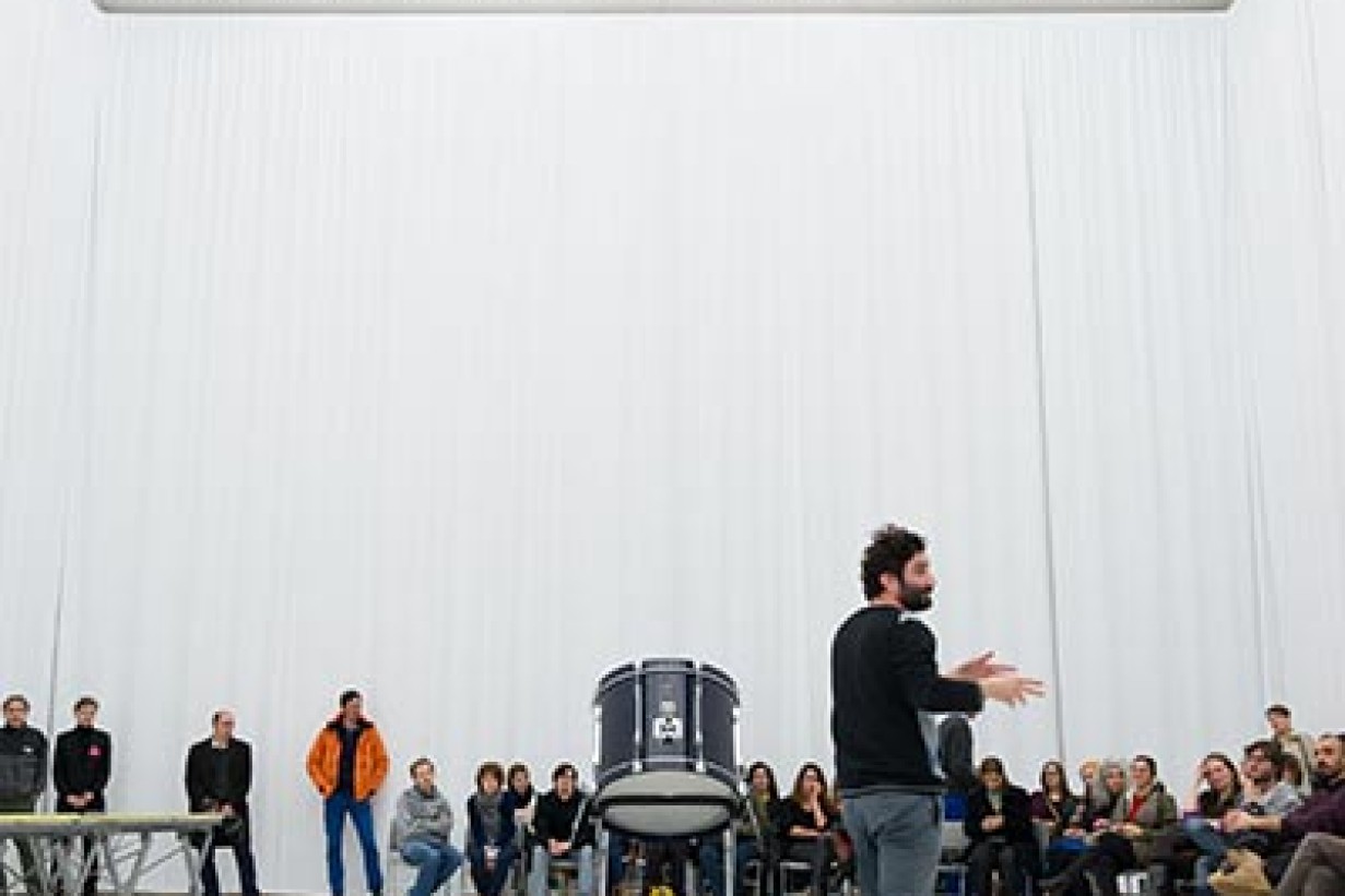 For the first MAK NITE Lab of 2013, artist Cevdet Erek (*1974 in Istanbul) has developed a site-specific performance concept. Erek has combined elements of his 2012 Nam June Paik Award-winning work SSS Shore Scene Soundtrack, in which he recreates the entire spectrum of noisy marine sounds as heard from the seaside, with drum rhythms from his dOCUMENTA (13) installation Room of Rhythms. Ereks performance will take place in his installation Re-Illuminationconceived for the MAK exhibition SIGNS TAKEN IN WONDER. Searching for Contemporary Istanbulin the MAKs central exhibition hall, where the artist will also involve the insulated echo in both a talk and a Q&A session.