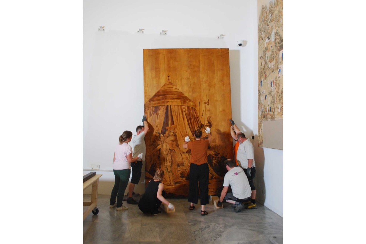 Visitors are afforded insights into research findings on the panels’ historical context and the preliminary material-technological test results, learn about the devolopement of a concept for conservation and restoration work and get to see “roentgen images” (X-rays) of Roentgen’s pictures.