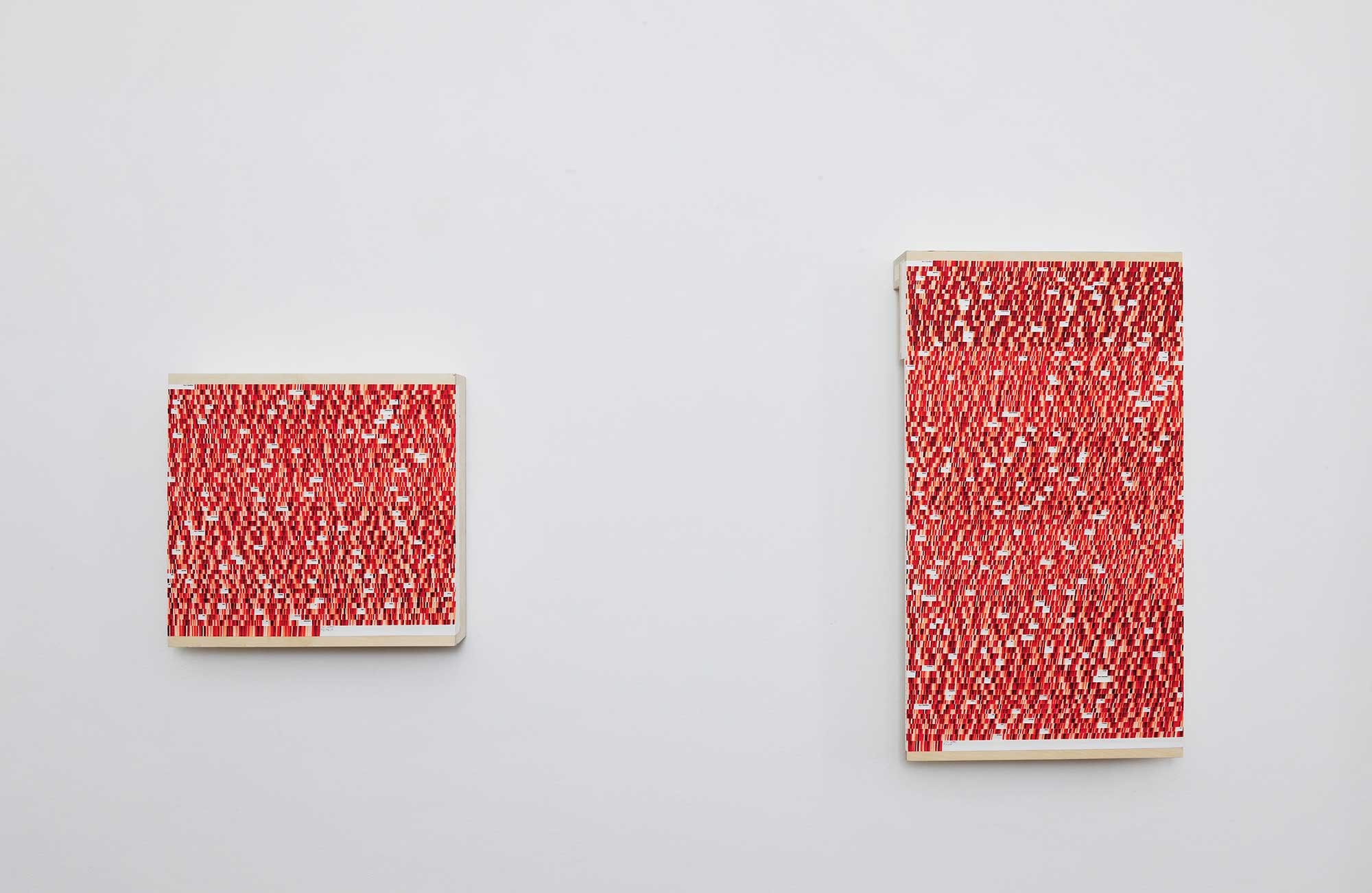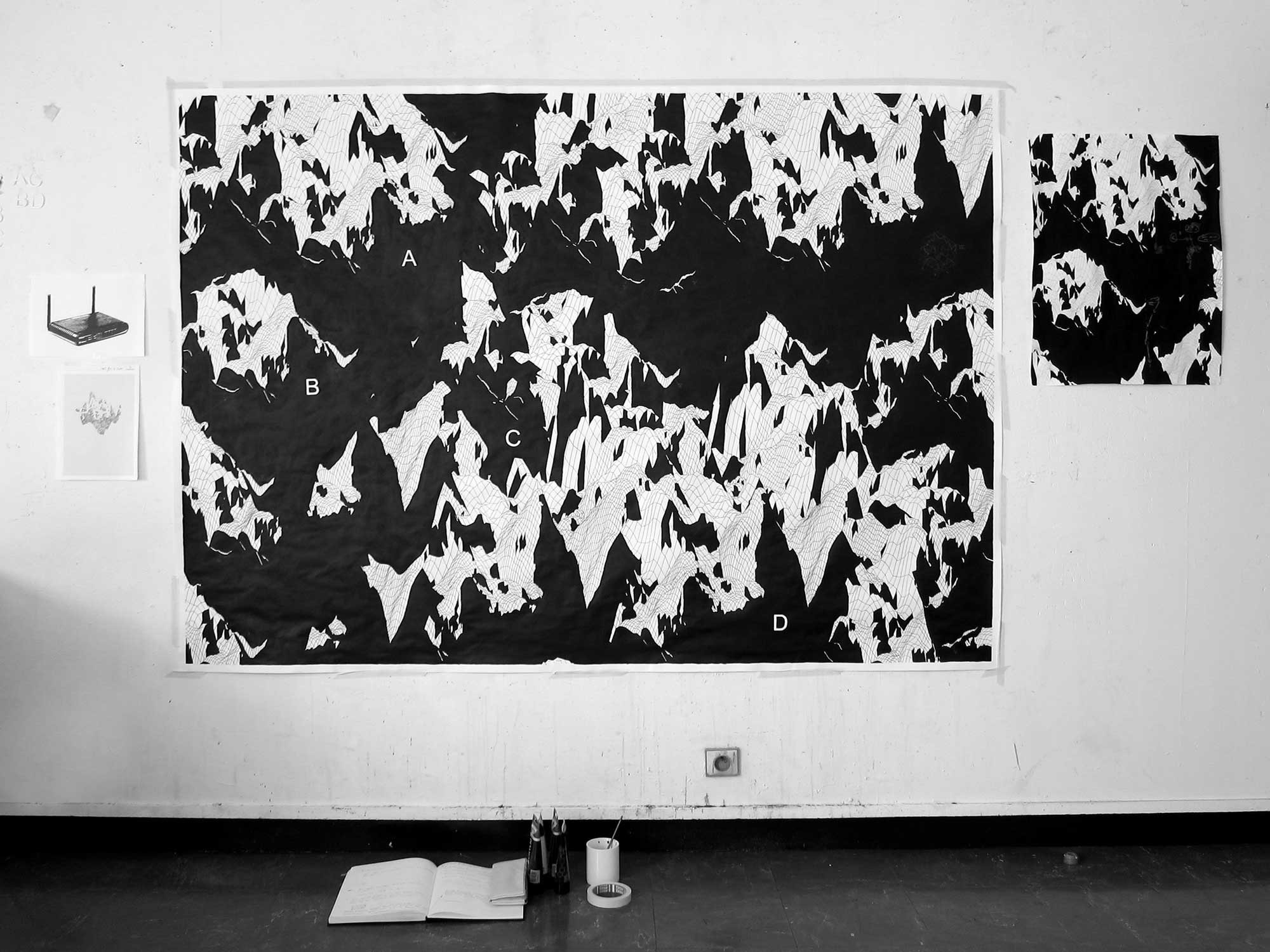 Peter Jellitsch, Data Drawings (29–33), 2015, Crayon, acrylic and lacquer on paper, Unique pieces © Peter Jellitsch/Photo: MAK/Aslan Kudrnofsky