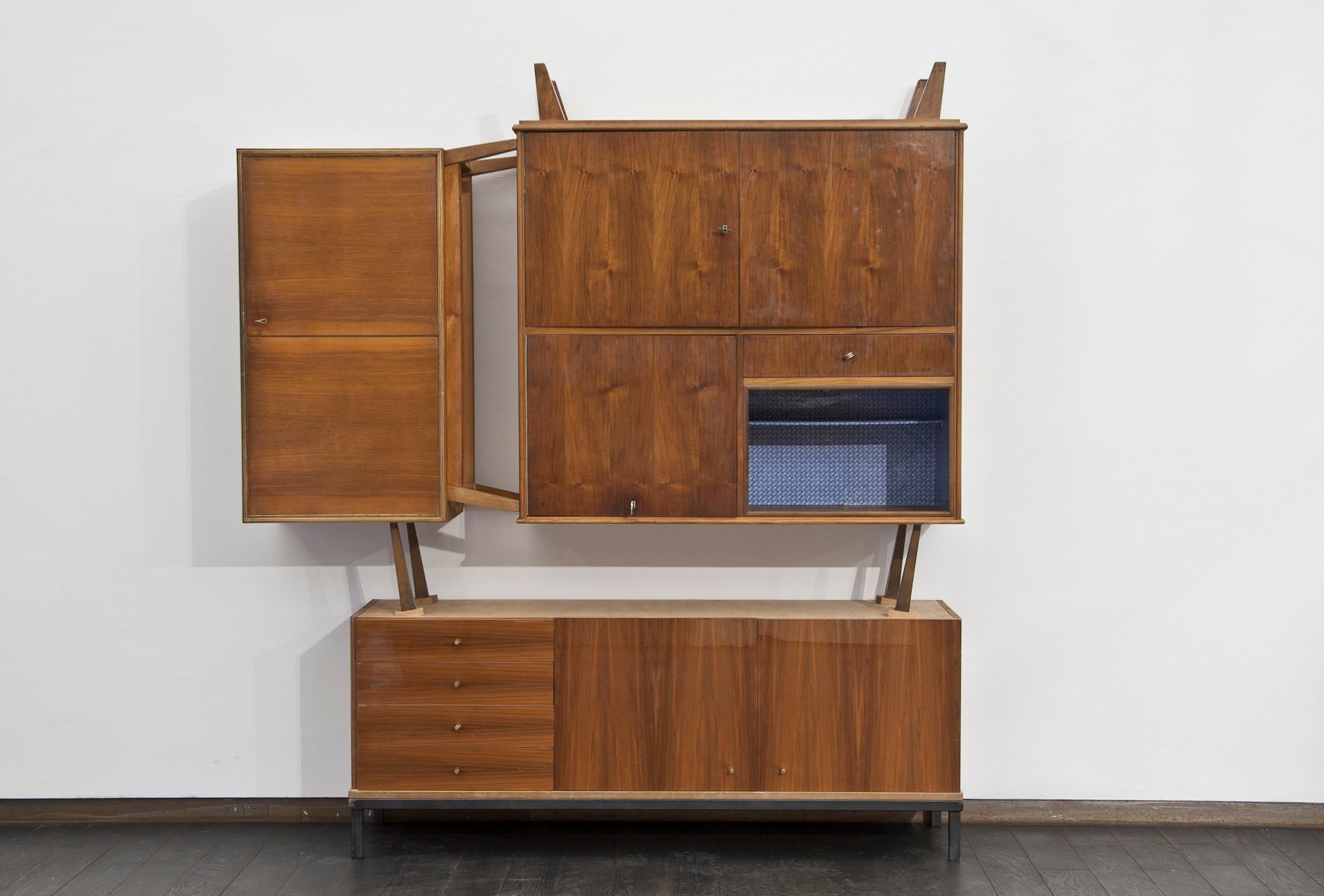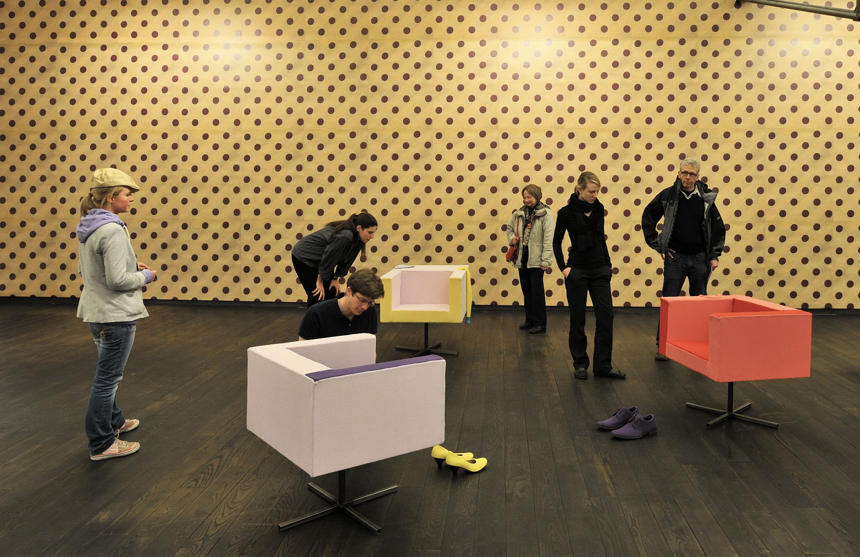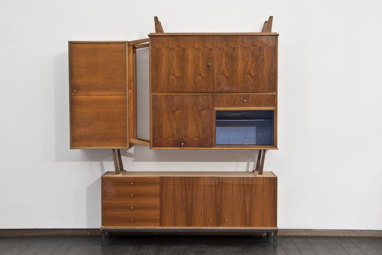 Schöner Wohnen, an intervention developed by Erwin Wurm for the Permanent Collection of Contemporary Art, infiltrates and undermines classic interior furnishings with various narrative strands. The focus is on furnitureobjects of functional value and the standard repertoire of the social space. Such pieces manifest attitudes towards life in a model fashion. Wurm overturns this world of things, however, and in the process he further exaggerates the functionality and symbolic nature of his objects. Starting with originals from between the 1930s and 1960s, he forms and animates furniture objects into applied sculptures, expanded by so-called Action Models.