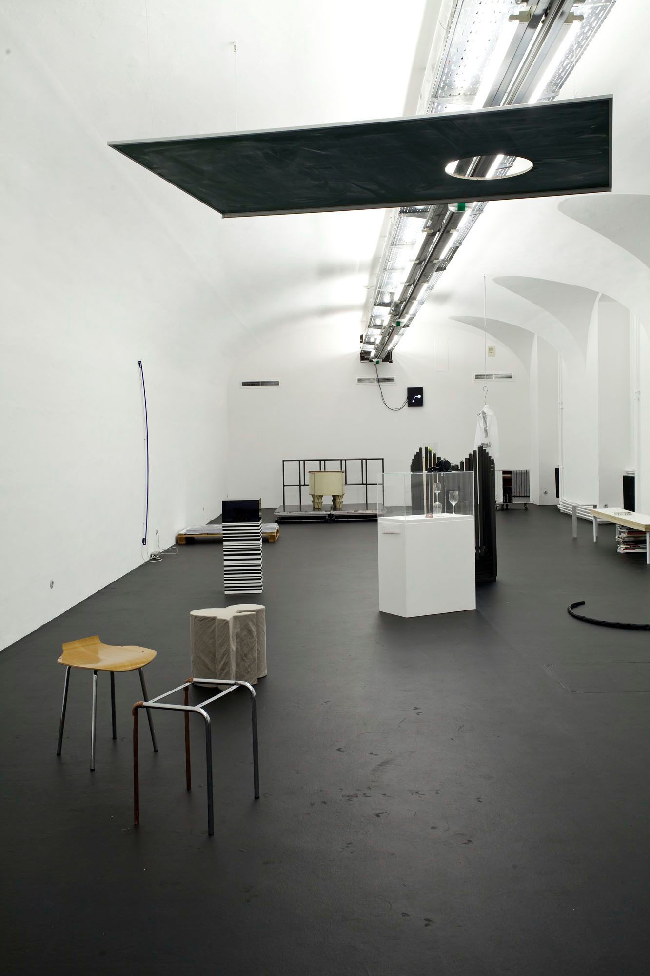 In his installation, Benjamin Hirte reacts to specific conditions and forms of presentation that he discovered in the MAK Collection. His poetic and humorous staging allows ideas of the applied to also be perceived from subjective vantage points. Objects and structures from various categories of both artistic and design output are brought together intuitively and orchestrated within the space. Elements taken from found objects, standard utilitarian items and designer chairs from the MAK all flow into Benjamin Hirtes sculptural production process. In the space, Hirte blurs the boundaries between museum exhibition practice and an artists narration, functional display, archived objects and the inclusion of his own works. His dialog-oriented experimental designs suggest not least the question of just who can learn from whom: the visitors from the museum, or the museum from its visitors?