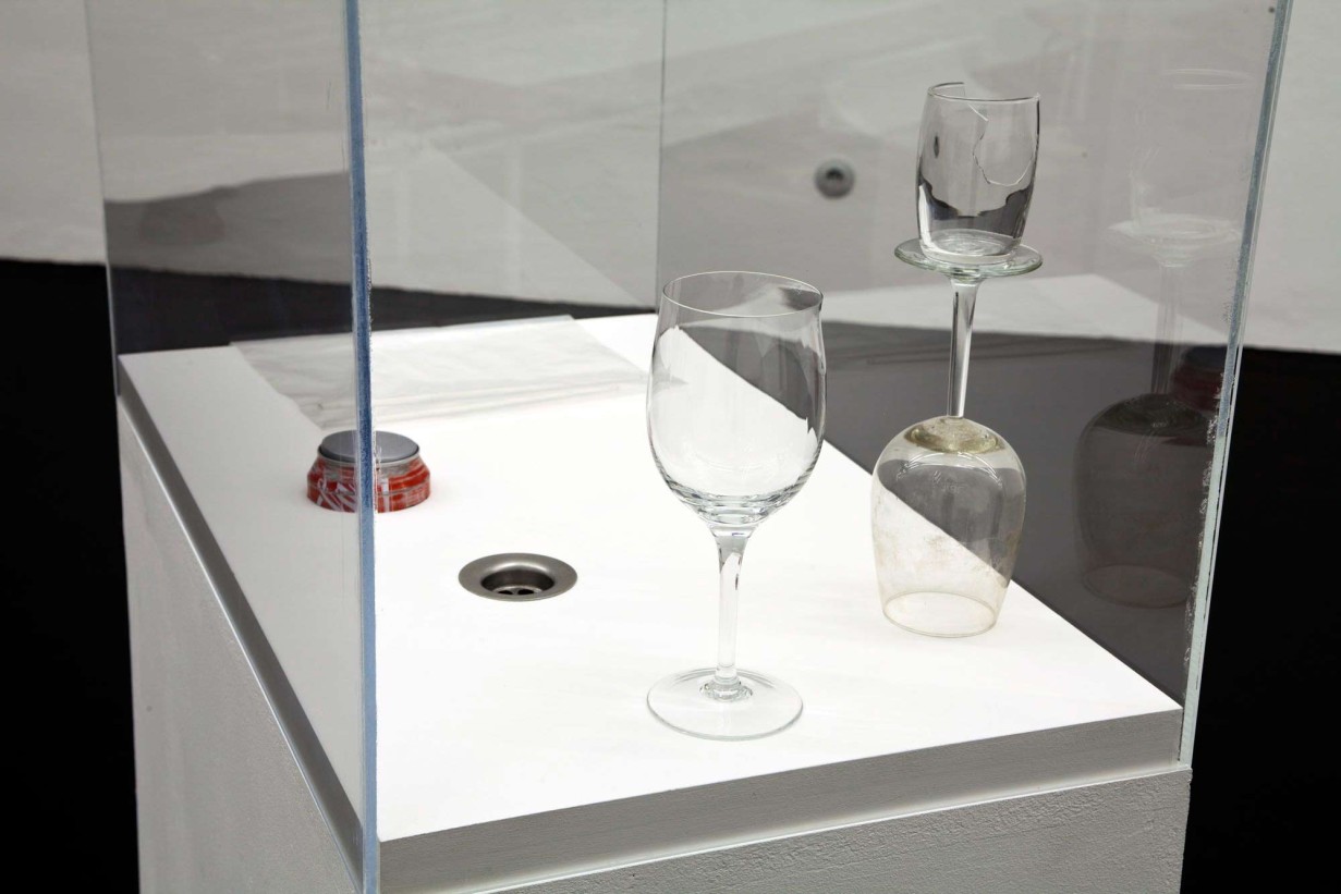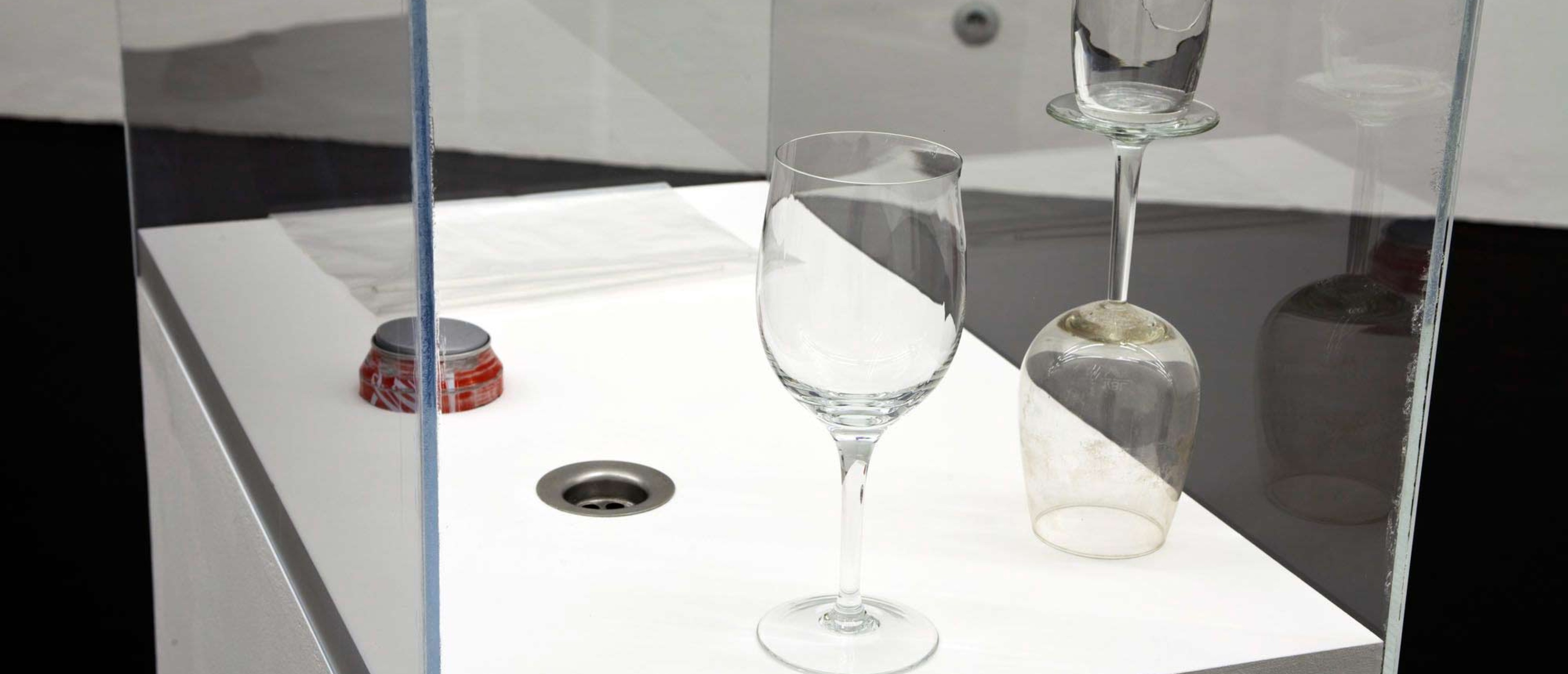 Display Case, MDF, wall paint, glasses, various materials