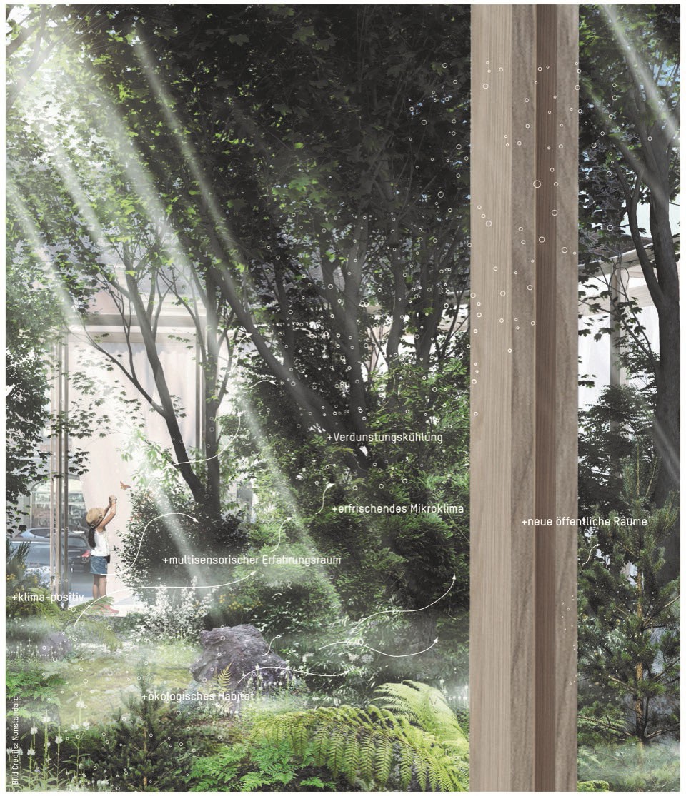 The first of such visions is already being realized this year within the framework of the Graz Year of Culture: a prototype model for cooling the city. This forest pavilion is a multisensorial experience that also functions as an agora for a wide-ranging discourse on climate-related topics. Via a live video link, the woodland setting and activities taking place there will be directly visible in the MAK as an active component of the exhibition.