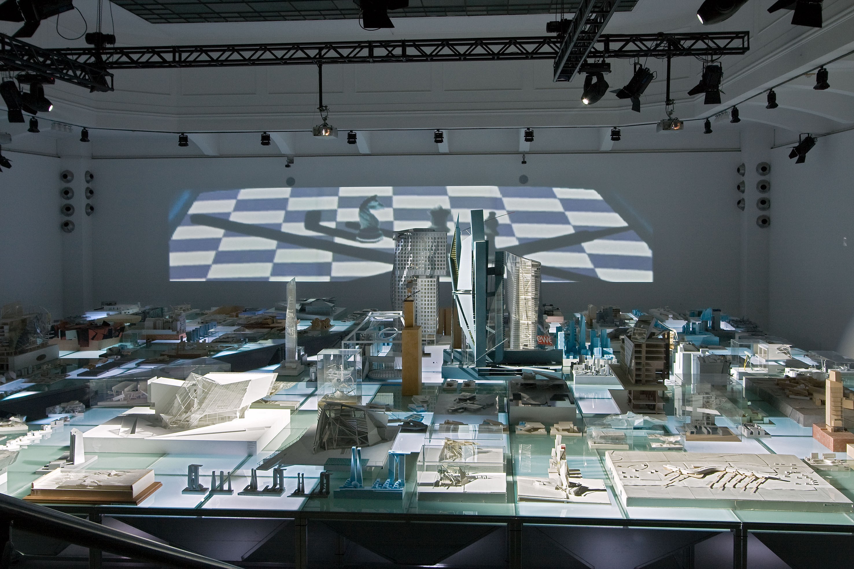 In the uncompromising implementation of visionary and experimental architecture, the team has formulated essential tendencies of our time over the past forty years. 1968, the architects proclaimed that Coop Himmelblau is not a color but an idea, of creating architecture with fantasy, as buoyant and variable as clouds and thus set out to lift the word of building out of its hinges. Their play with exorbitant spatial phantasies is reflected in the conceptual design of the MAK exhibition which comprises two different presentation levels. In the center of the show is a spatial installation developed especially for the MAK, which palpably illustrates the continuity and variety of architectural articulation in the work of COOP HIMMELB(L)AU. An oversized model table features 306 architectural models of about 115 selected and exemplary international projects which in their totality are reminiscent of a grown urban fabric. A walkable platform-like element affords unusual perspectives, with the visitors eye choosing freely from the entire prospect, singling out various aspects for microscopic viewing, as it were, by continually refocusing and zooming in on different details. This conceptual setup also involves a pointed lighting choreography and large-screen projected film sequences.