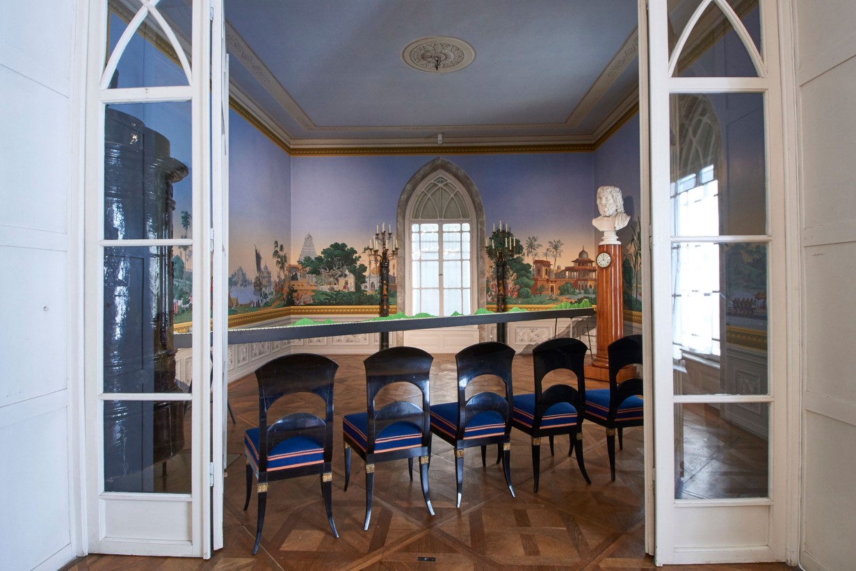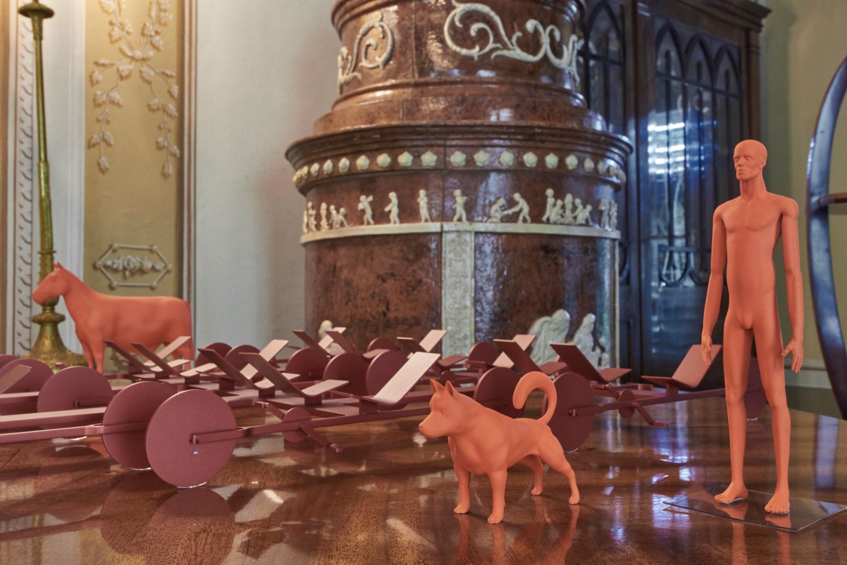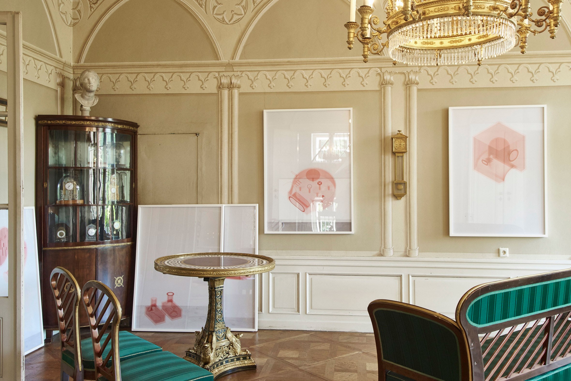 With The School of Constructed Realities—the title references a short story by Dunne & Raby for the textile company Maharam—, the designers make use of the Geymüllerschlössel as a meeting place for the founders of a fictitious school that both researches and teaches unreality. The gathering could take place in the past, present, or future. In several workshop scenarios, works by the studio are treated as case studies, such as United Micro Kingdoms (2012/13), a speculation about the continued existence of the United Kingdom, and Not Here, Not Now (2014), a series of interface objects from an alternative society. In their analysis of fiction and reality, they explore among other things the Theory of Objects by the Austrian philosopher and psychologist Alexius Meinong (1853–1920), which is hardly known today.