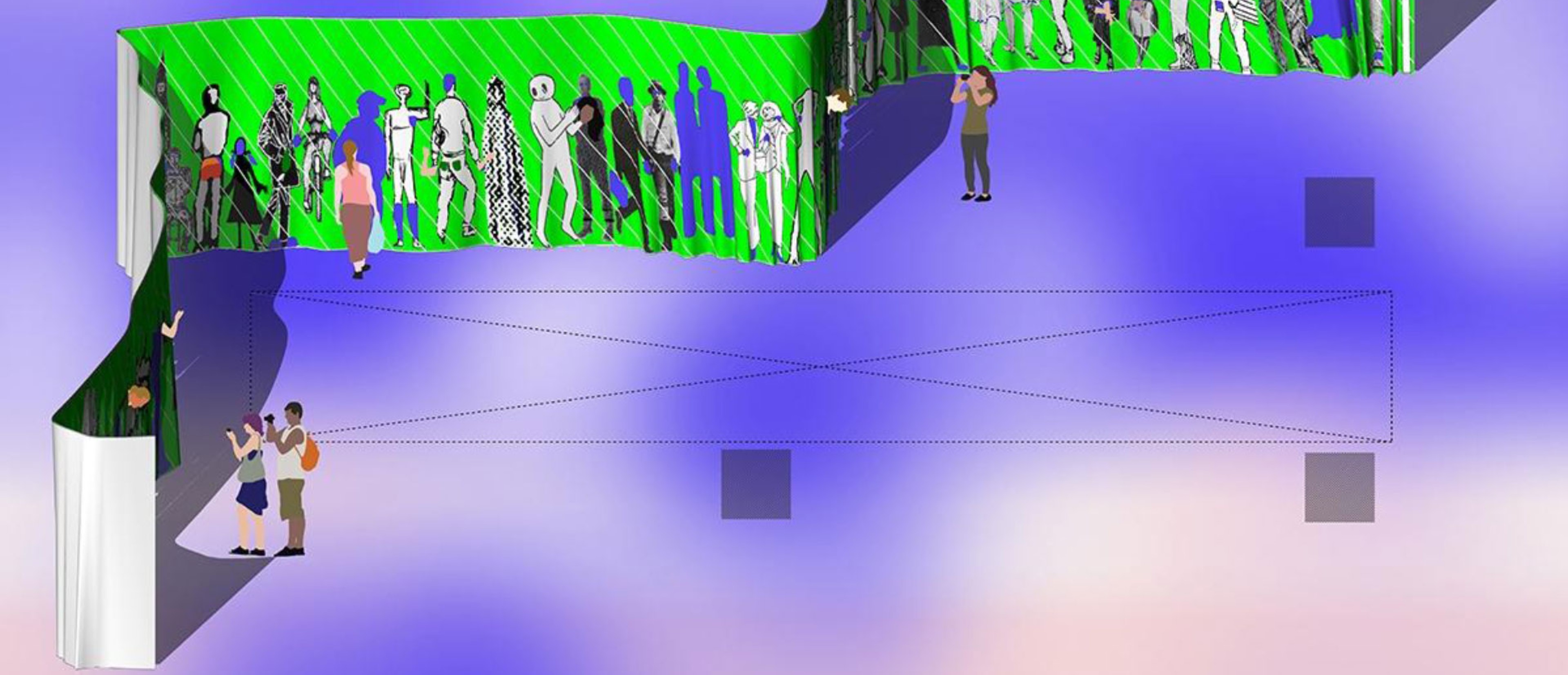 Alongside the radical visioning of buildings, architects have also re-envisioned the catalog of people, bodies, figures, and actors that populate their buildings. ENTOURAGE presents recent projects by MOS, EXTENTS, and FCCW in which the use of scale imagery has been reimagined. The exhibition explores the specific population that animates the architectural imagery.