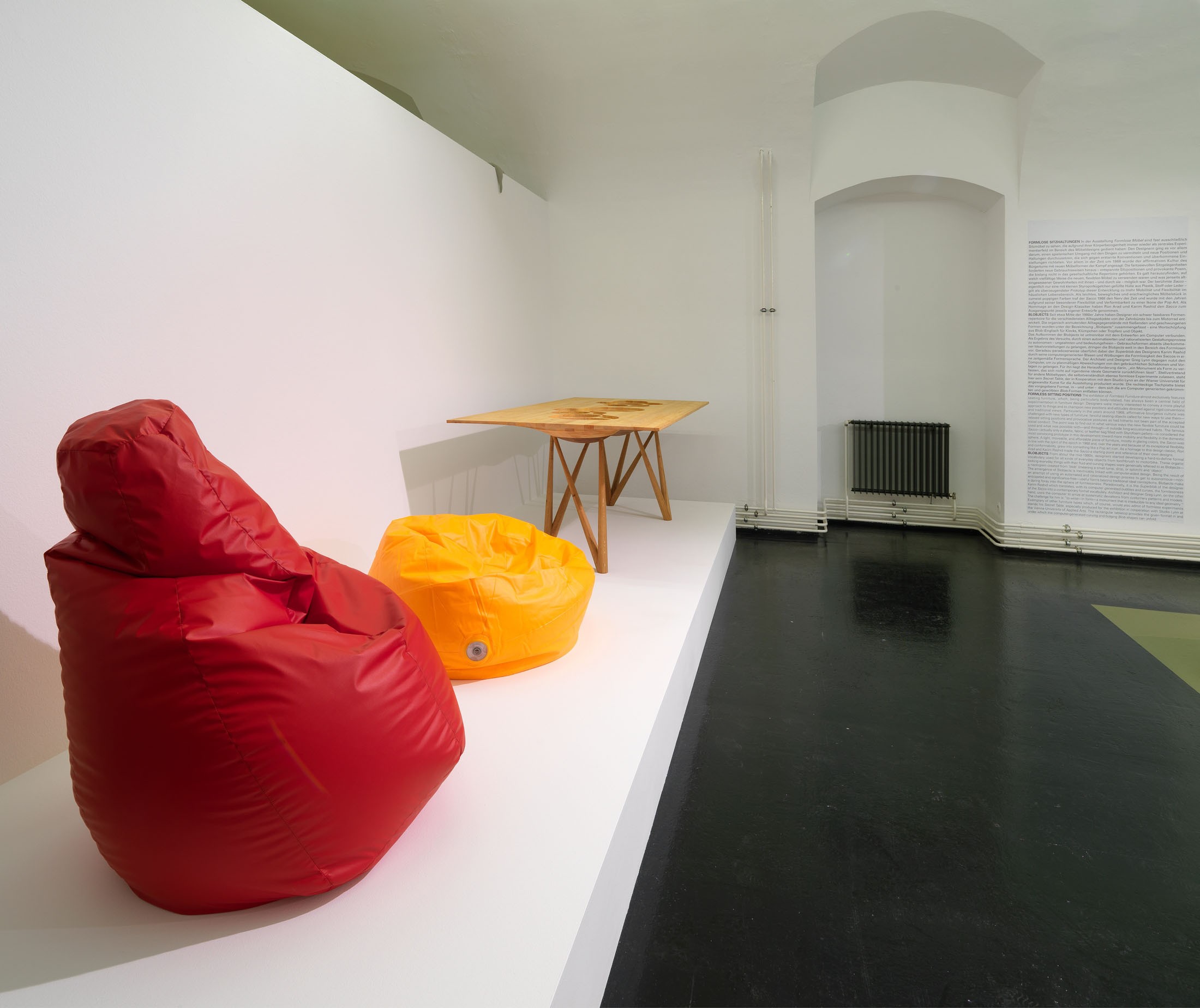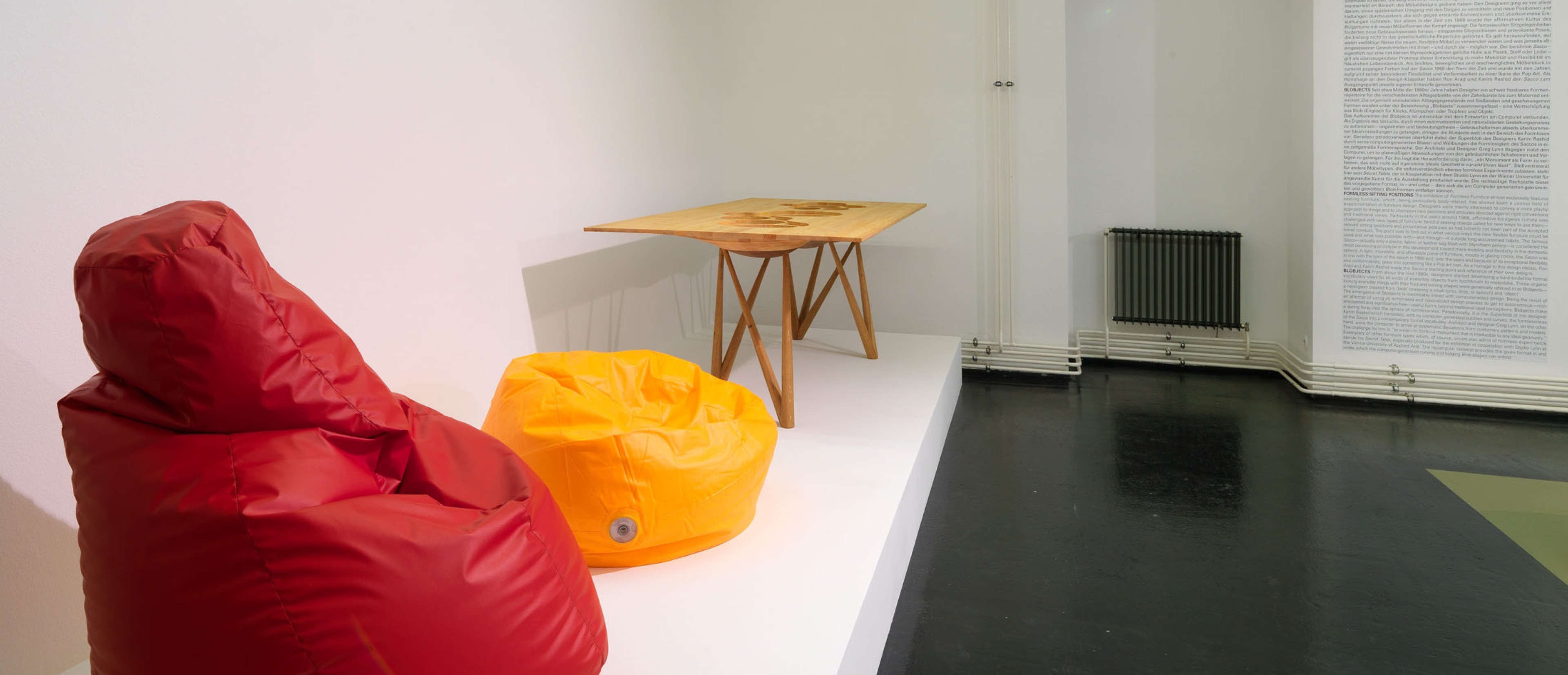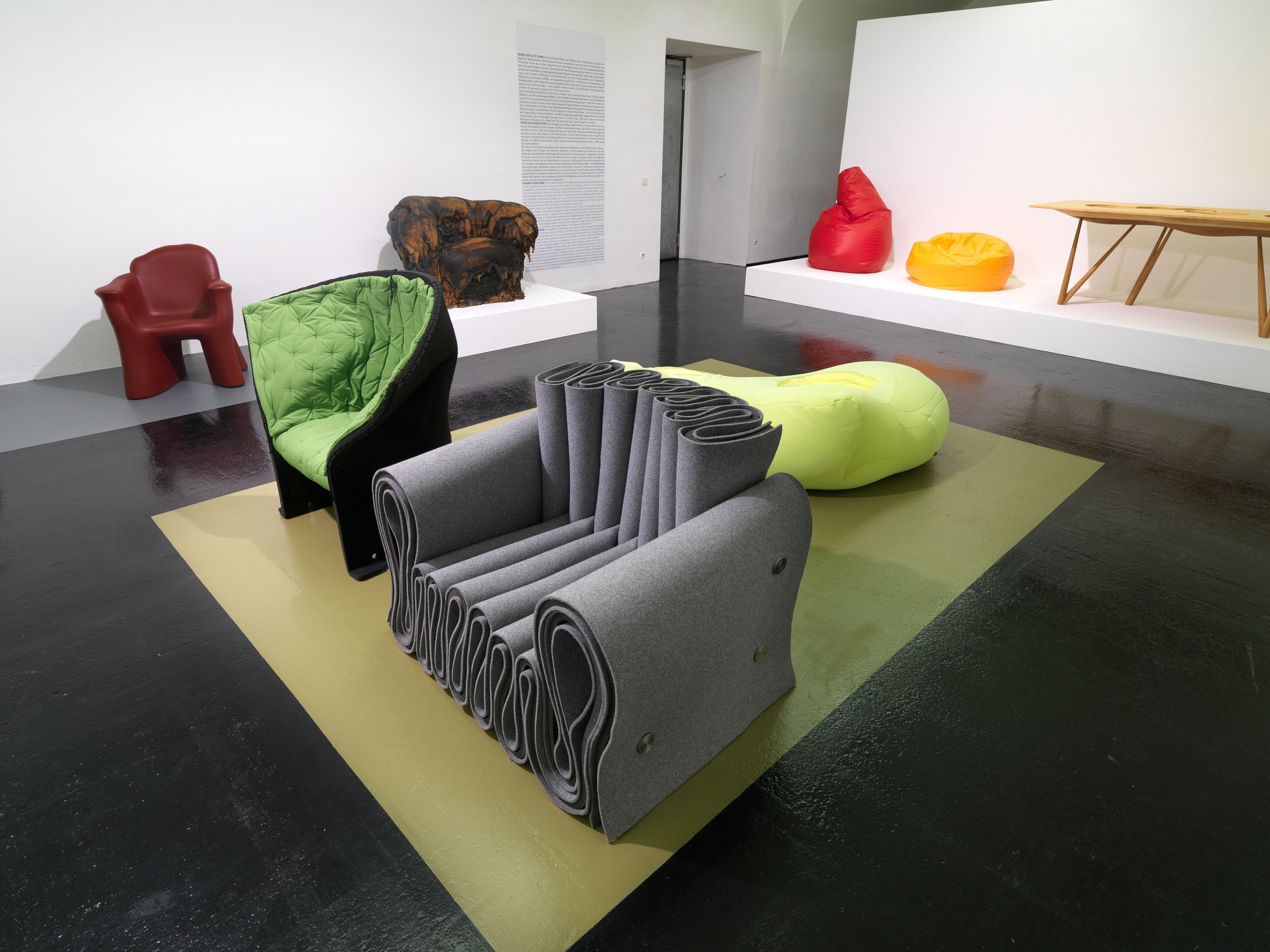 Since the 1960s, contemporary artists have transcended and redefined traditional relations between materials and form by means of the experimental, often seemingly formless use of a variety of materials. As a first, the exhibition Formless Furniture shows that the rule form follows material was also applied and still is in the design of everyday objects: to this day, designers playfully oppose the so-called good form and the marketing of conformity in living environments.