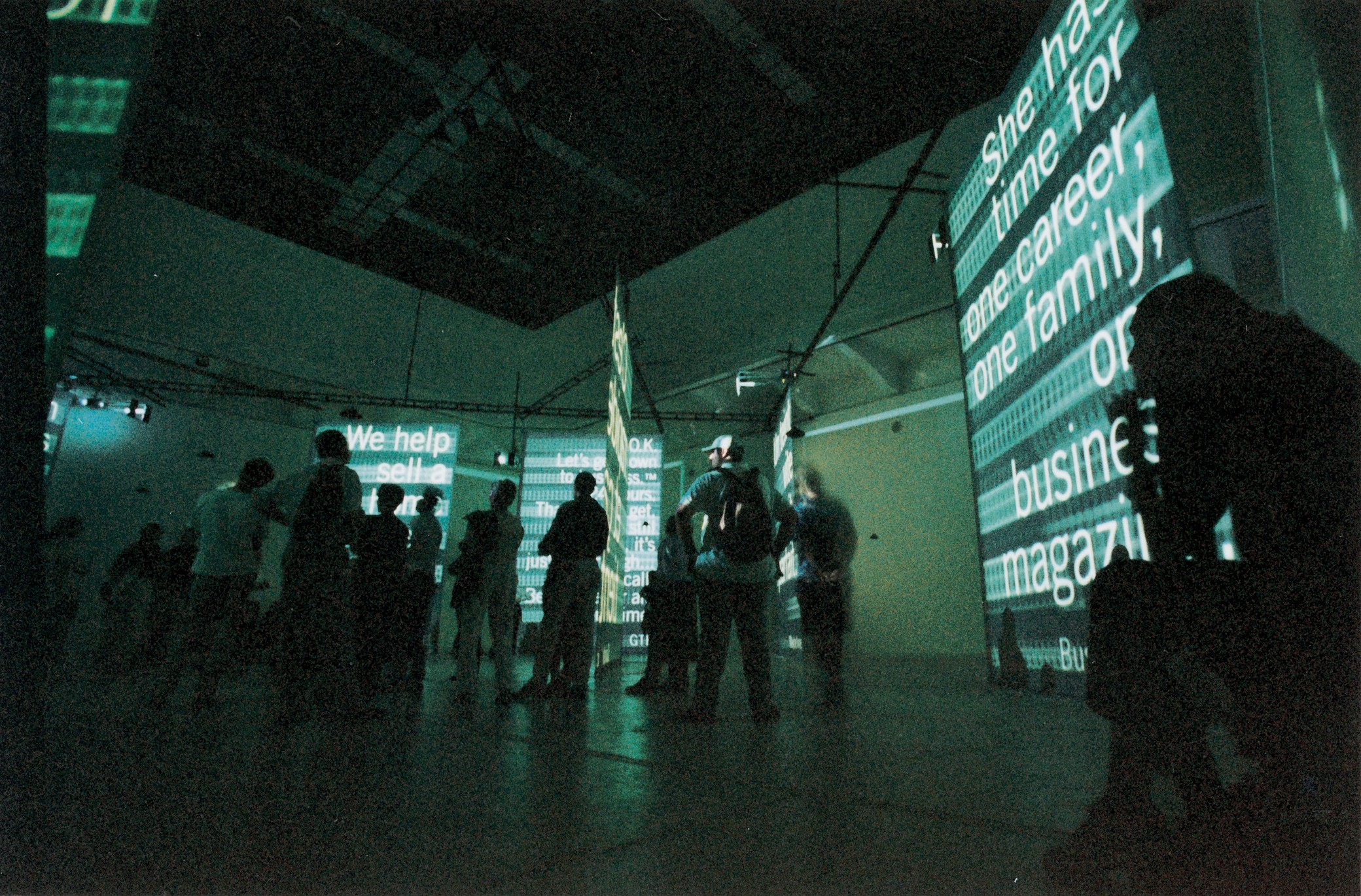 This by the Light of That , a joint project by New York artist Glen Seator and Toronto-based designer Bruce Mau, dealt with typography, language, and signage. Operating with different alphabets, several stacked neon sign constructions of different colors and configurations illuminated and elucidated the spaces of the Schindler House.