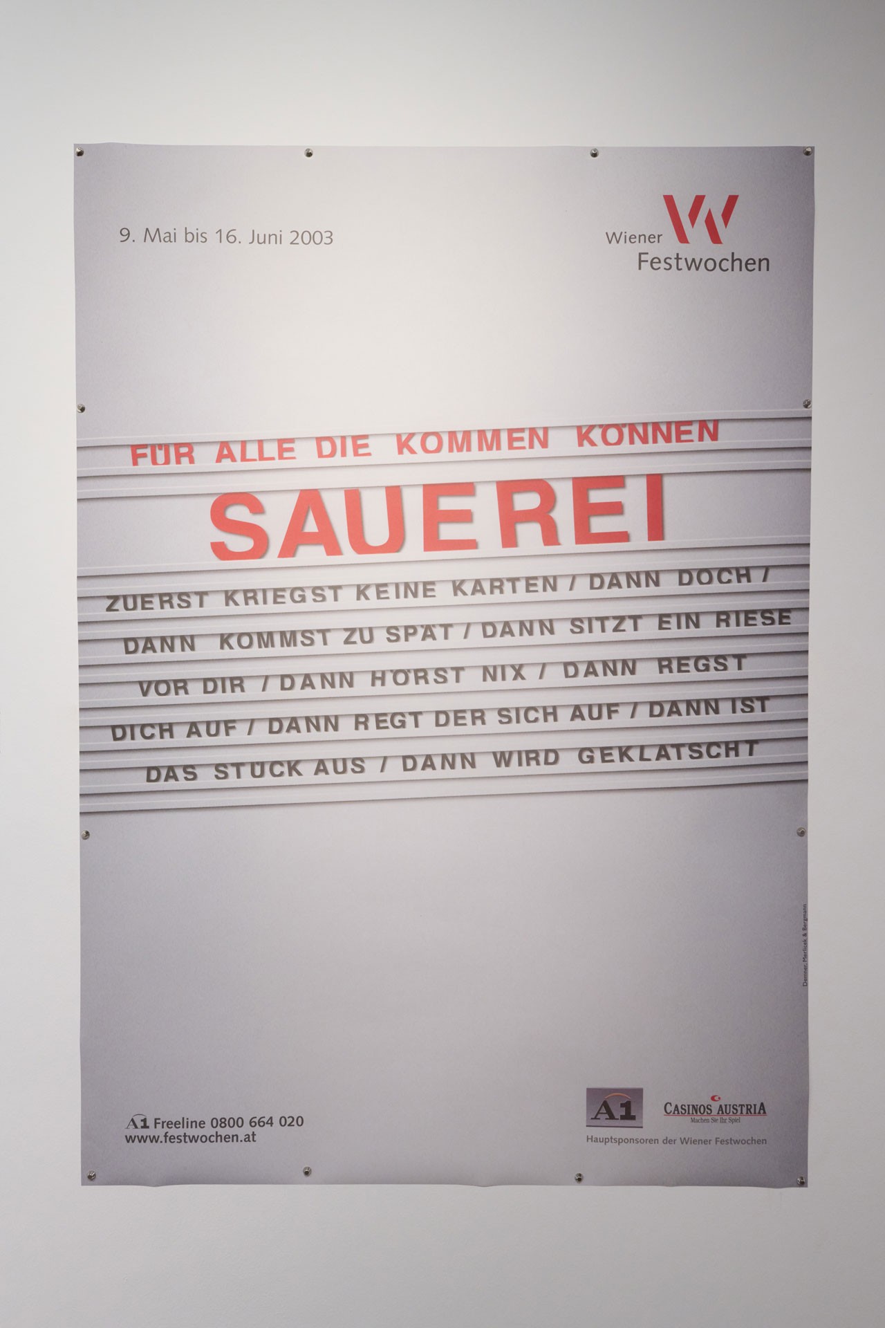 Together with the MAK and in close collaboration with the Wienbibliothek im Rathaus (Vienna City Library at City Hall), both known for their spectacular poster collections, the Vienna Festival (Wiener Festwochen) will feature a selection of their most impactful campaigns drawn from over a thousand posters.