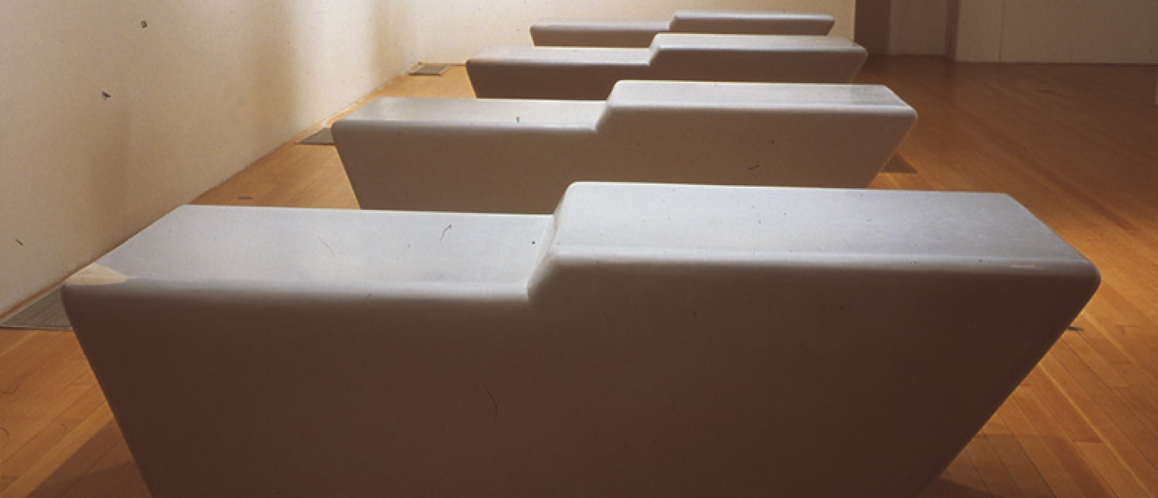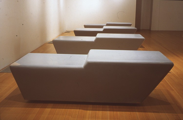 Jesse Webbers fiberglass oversized abstract sculptures are finished in condo-inspired stucco, fake wood grain, rusted polish or high gloss hot-rod green. Webber will produce site-specific sculptures for the Schindler courtyards. Turning to pre-fabricated mid-century trailer homes from his native Tennessee, Webber examines the similarities of these forms to California case study houses and creates dysfunctional elemental objects based on mnemonic translation of these highly charged aesthetic, political, and socio-economic forms. This project attempts to rework tropes of modernist design, tracing its origins to its perverse abuses and misappropriations.