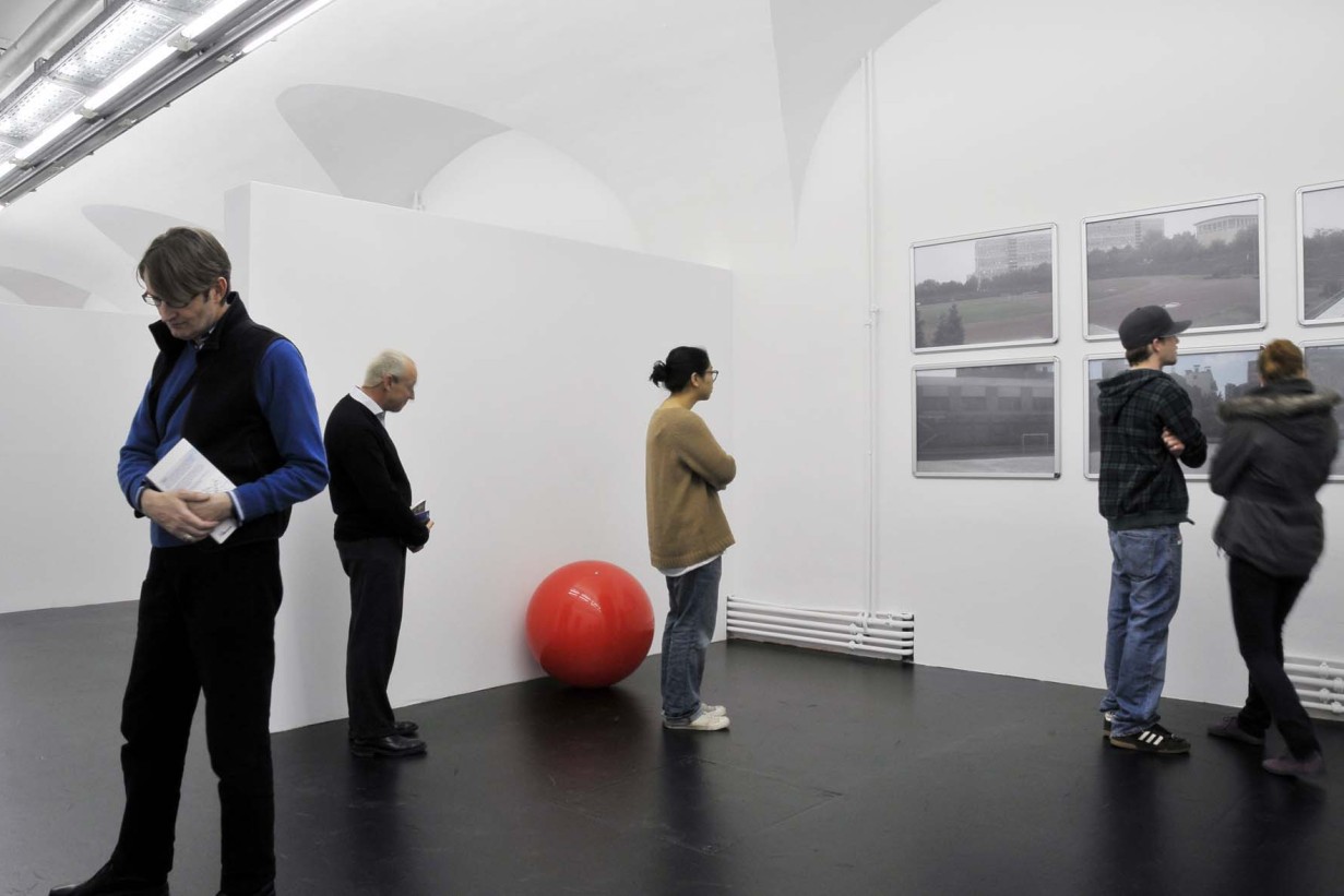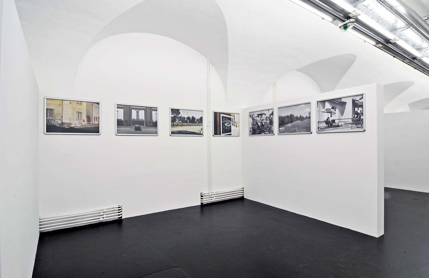 Josef Dabernig works at the interface between theory and research, weaves documentary and fictive elements of a potential reality into analytical, abstract ideas. The installation arranged for dramatic effect into a gallery of gymnastics has been developed specially for the MAK Gallery as a projection room for the film of the same name and for an accessible environment of sports equipment, as well as for photographic allusions to specific works of architecture. At the center of the film are six actors who carry out simple exercises in a Viennese institution. In this case, it is less about achievement, more about an existential relationship with ones body. Communication is frozen in this tableau-like staging into the geometry of gestures and looks.