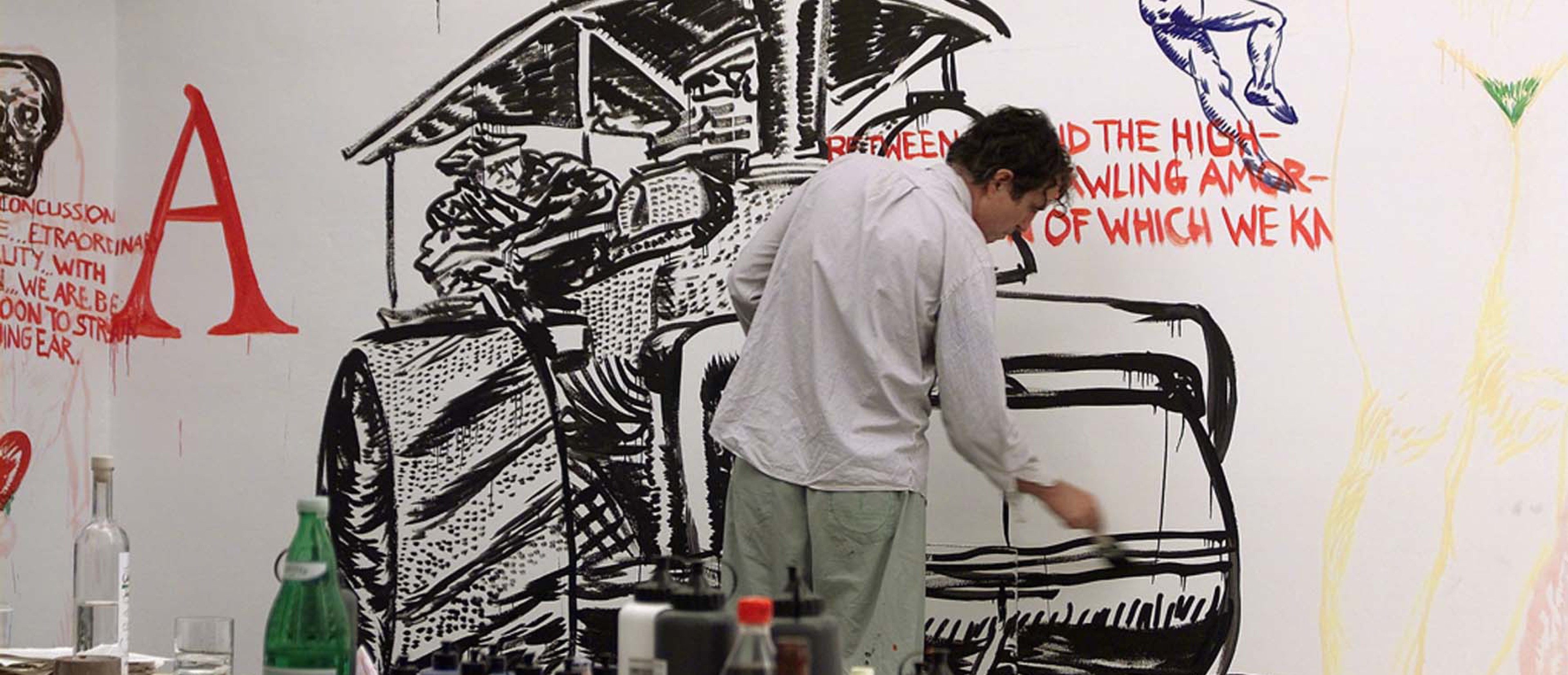 In this second part of the exhibition (7 March 6 May 2001) we see a wall painting by Raymond Pettibon in the MAK Gallery.