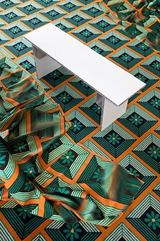 Robert Stadler, Fantome, floor patterns from the Geymüllerschlössel digitally edited for textile printing in collaboration with Backhausen, 2014. Robert Stadler, Dora bench, 2014