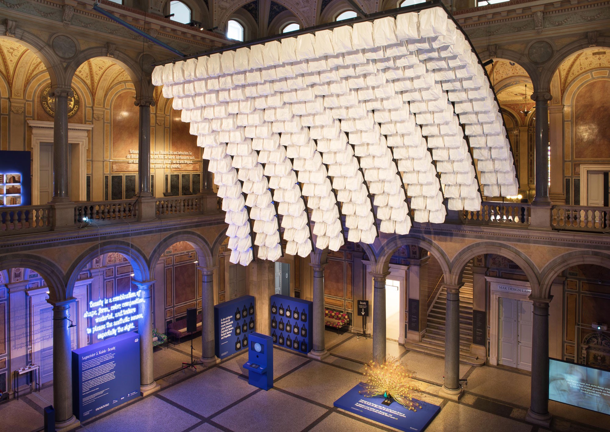 With their exhibition project SAGMEISTER & WALSH: Beauty, Stefan Sagmeister and Jessica Walsh make a visually impressive multimedia plea for us to take delight in beauty. Spreading across the entire MAK, their exhibition investigates why people feel attracted to beauty, how they can deal with it, and which positive effects beauty can have. With the aid of examples from the fields of graphic design, product design, architecture, and city planning, Sagmeister & Walsh demonstrate that beautiful objects, buildings, and strategies are not only more pleasing, but actually more effective, and that form does not merely follow function, but in many cases actually is the function.