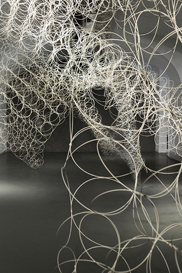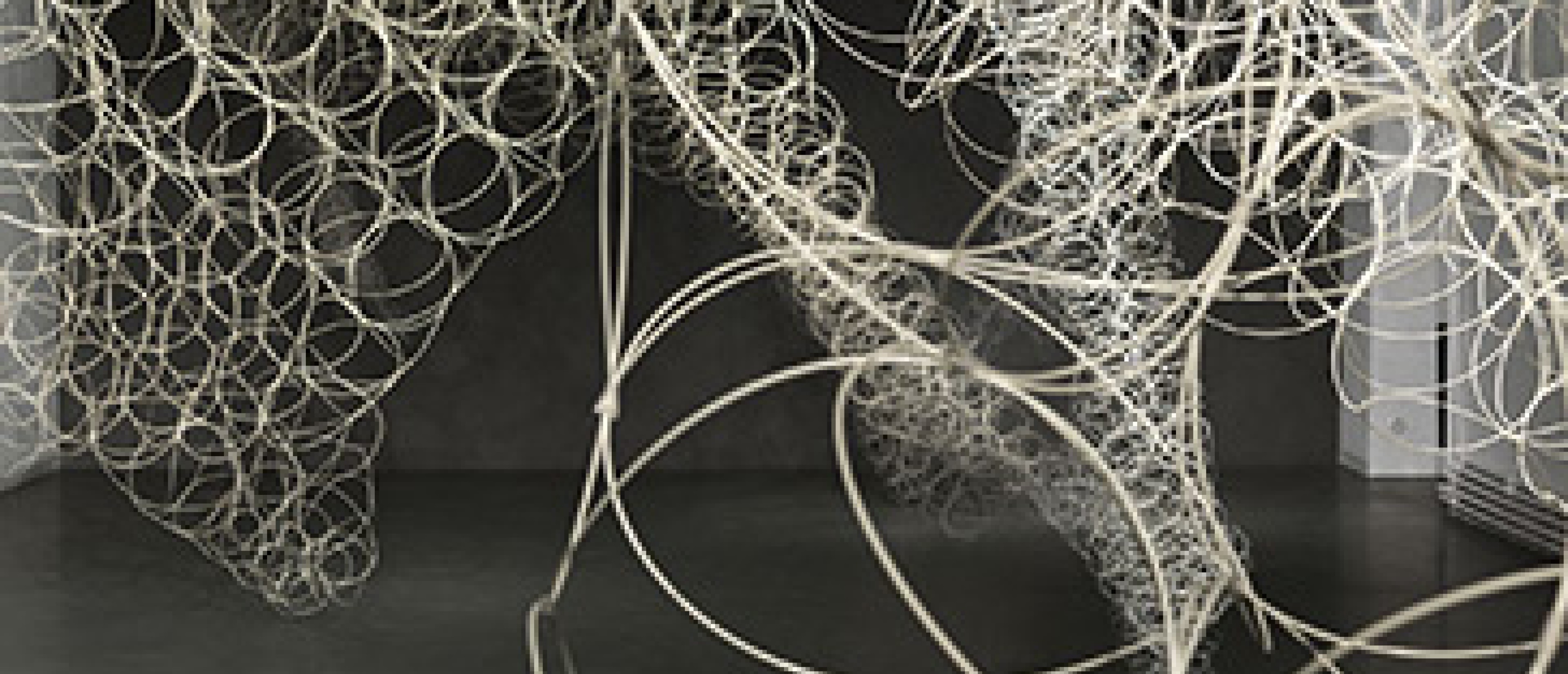 The walk-in installation conceived by soma architecture for its solo exhibition at the MAK deals with elasticity, the ability of specific materials to remain flexible, to be shaped and changed in a variety of ways. Elasticity also means an open approach to space and architecture as well as its perception and interpretation by people. The branched, cloud-like spatial structure also remains symbolically elastic: it does not prescribe meanings, and instead can be freely and individually interpreted. Despite the artificial nature of the material, it has the appearance of a living, growing organism and remains chaotic and ambiguous in spite of its stringent adherence to rules and clear geometric structure. In its elasticity, it stands for the speculative conception of space with which soma architecture explores the complex interactions between perception and geometric principles.
