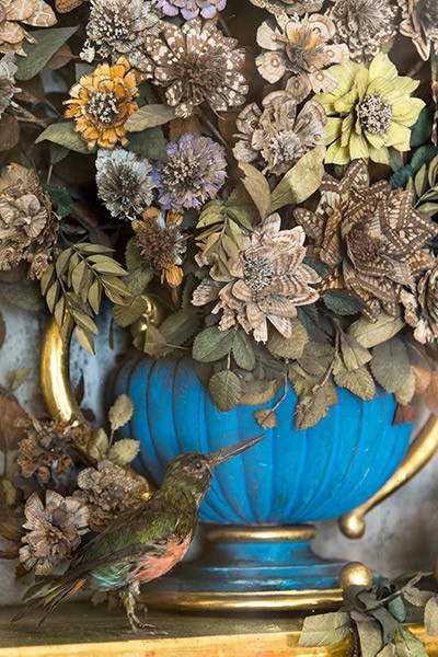 Suspended Display Cabinet with Bouquet of Artificial Flowers
