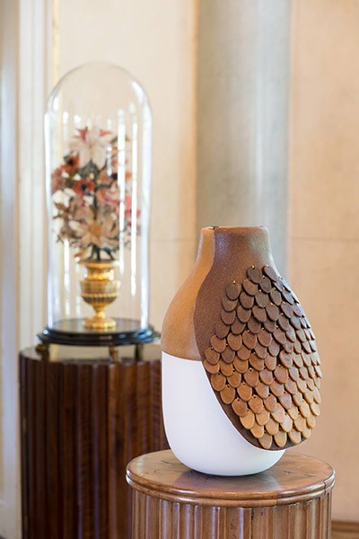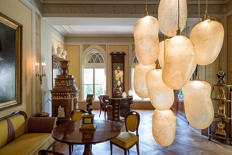 While the initial intervention last year, Time & Again by London-based designer Michael Anastassiades, was inspired by the villa’s old Viennese clocks from the Franz Sobek Collection, the work The Stranger Within by this year’s salon guest Studio Formafantasma, deals with the fascination evoked by the “exotic.”