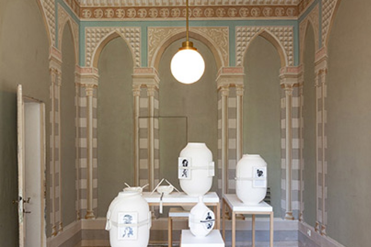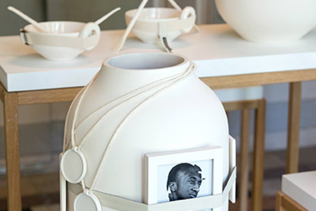 The two Italians Andrea Trimarchi and Simone Farresin, graduates of Design Academy Eindhoven, The Netherlands, have quickly become the international design world’s shooting stars thanks to fascination evoked by their multilayered and sensitive way of working. Their object series Moulding Tradition (2009), which deals with early Arabian-African influences on the Sicilian majolica that subsequently conquered all of Europe, took on a whole new urgency and significance when the Sicilian island of Lampedusa became synonymous with a looming invasion of African refugees.