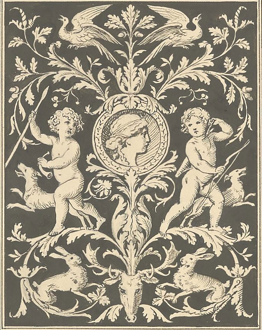 Friedrich Sturm, Spielende Kinder, Allegorie der Jagd [Playing Children, Allegory of Hunting], undated