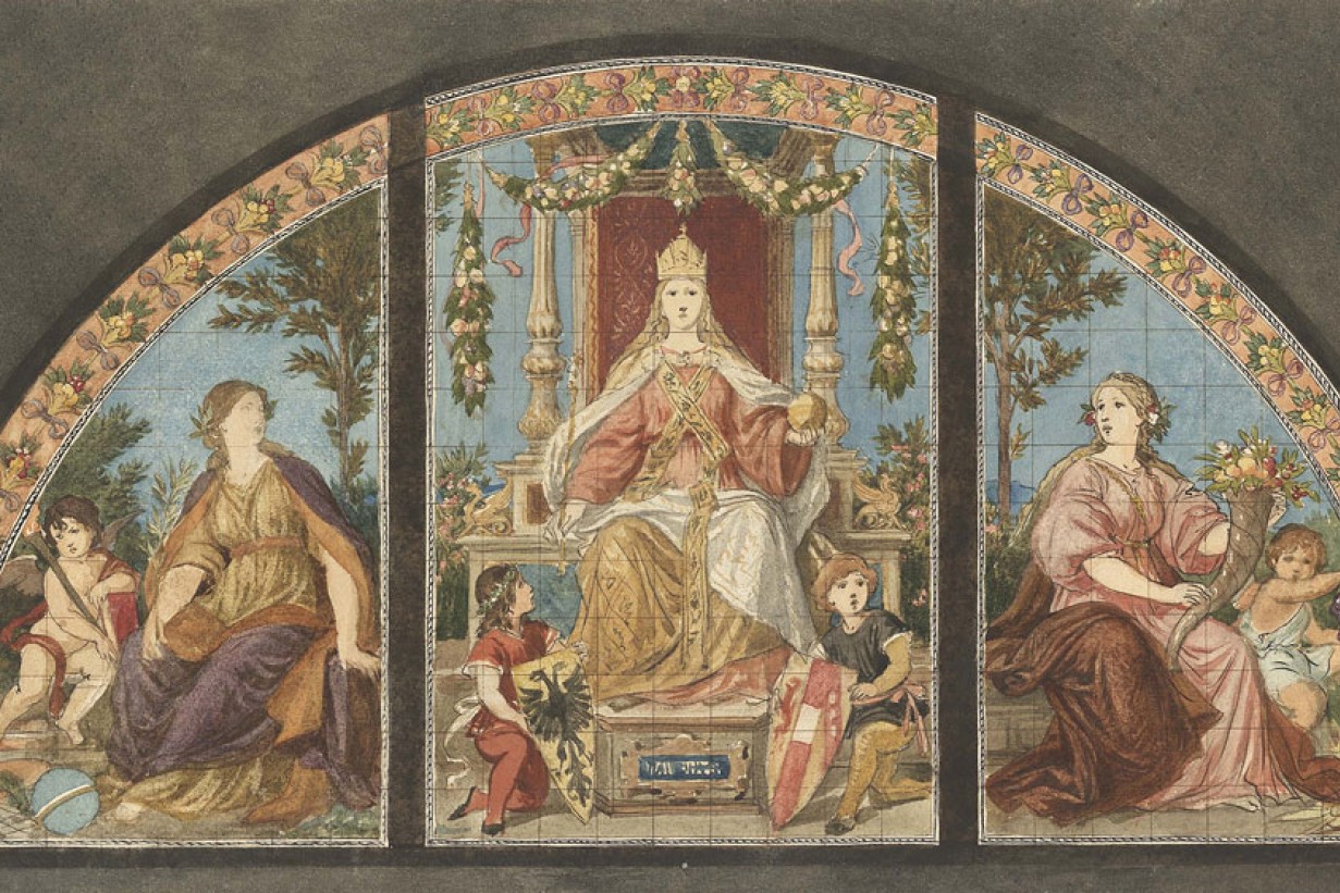 Ferdinand Laufberger, Allegorien der Architektur [Allegories of Architecture], Design for the façade of the Imperial Royal Austrian Museum of Art and Industry, Vienna, before 1871