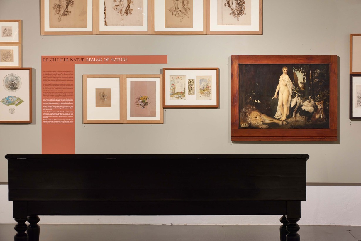 Besides Laufberger, the Ringstraße artists Ludwig Minnigerode, Friedrich Sturm, and Michael Rieser also left their mark as Klimt’s teachers on his work. Doubtless induced by Rudolf Eitelberger, modern artists such as Anselm Feuerbach likewise exercised an enduring influence on Klimt’s artistic development. The exhibition is thus dedicated to the influence of these years in the School of Arts and Crafts on Klimt’s oeuvre as a whole. Works from the MAK’s rich inventory, on show for the first time, are complemented by loans from international collections, illustrating the relationship between Klimt’s vocational training and his later artistic development.