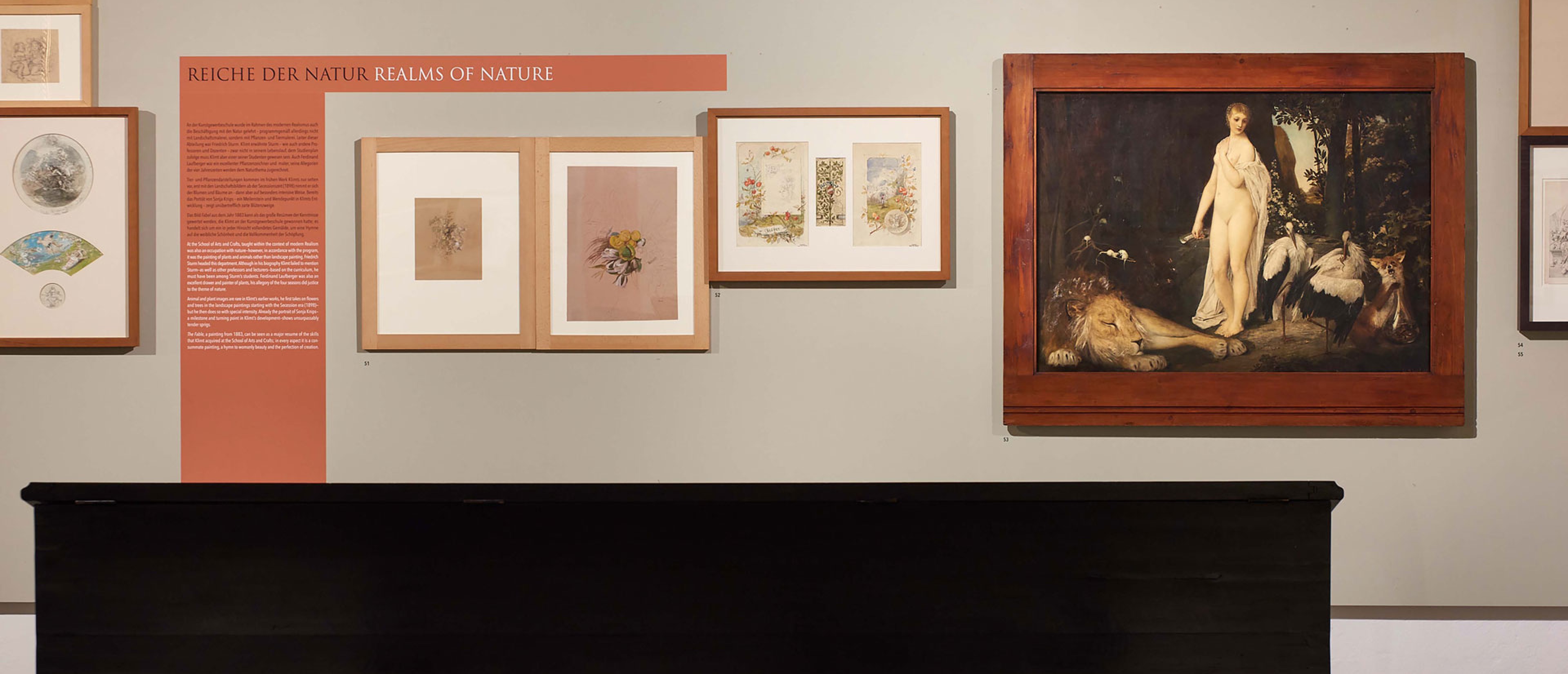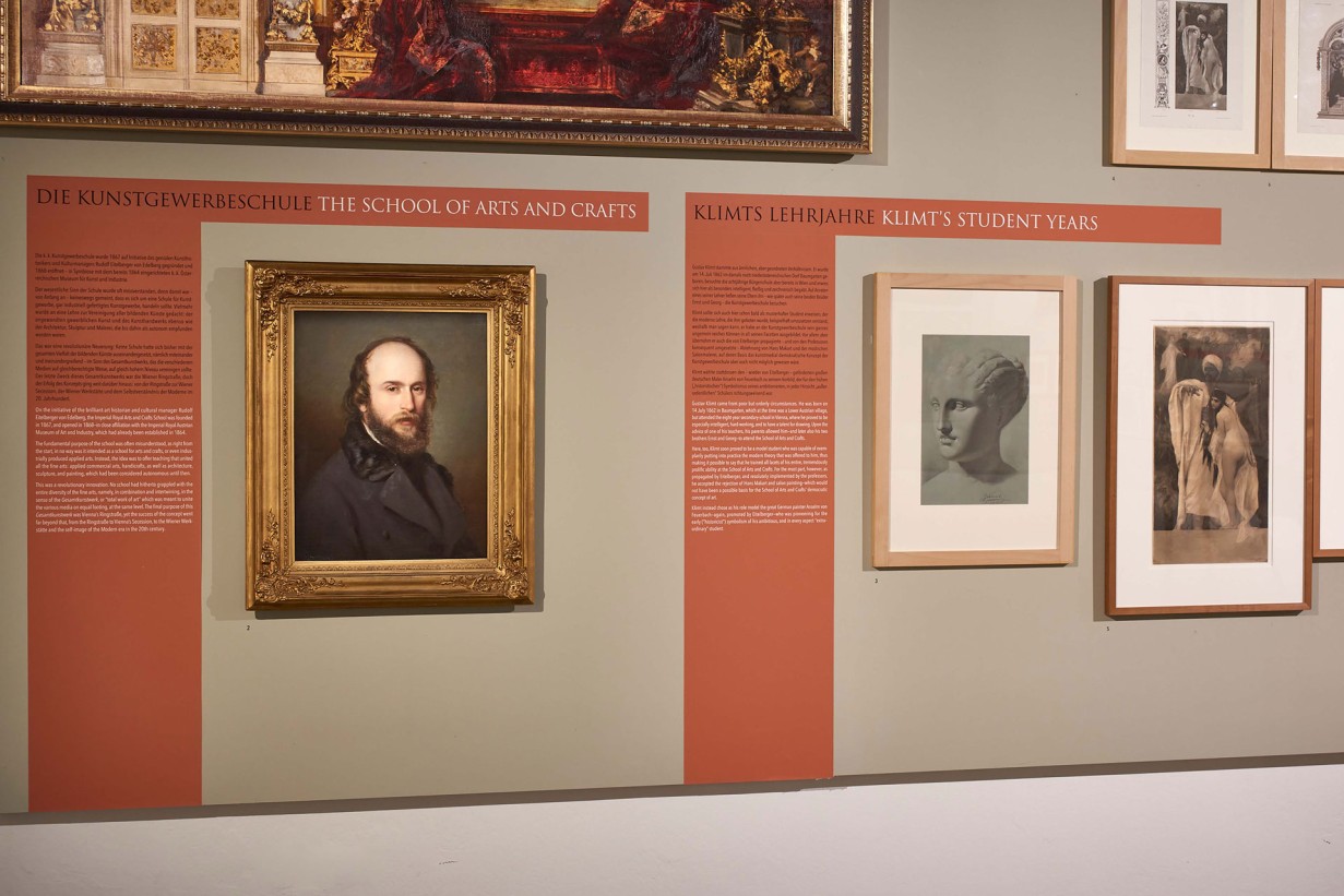 Scarcely any other artist has been the subject of so much literature as has Gustav Klimt. Yet to date the formative influence of his years at the Vienna School of Arts and Crafts has received far too little attention. The MAK is now turning its attention to this topic, whereby Ferdinand Laufberger, a professor of Klimt’s whom the latter revered his entire life, is being accorded a place of honor.