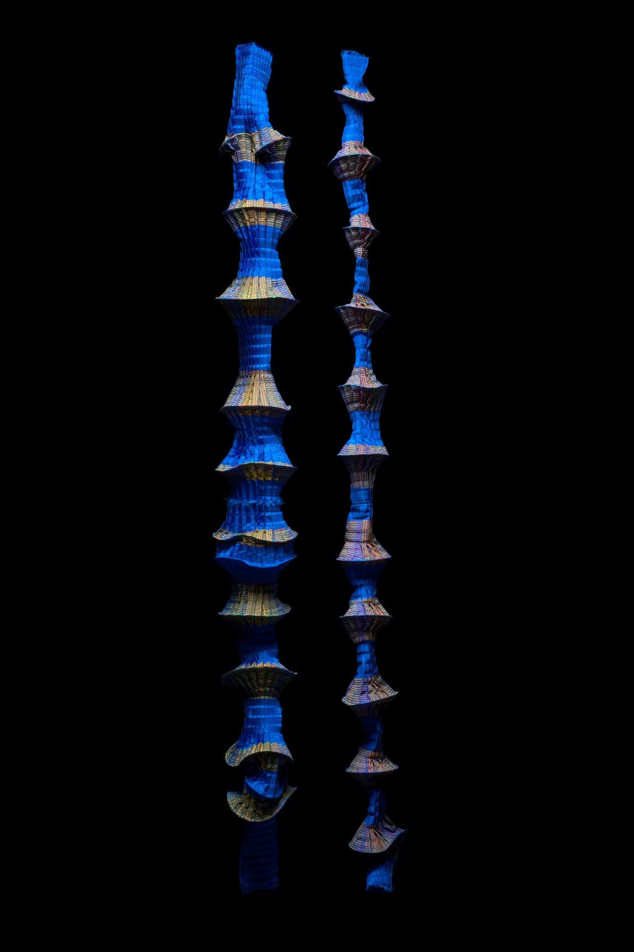 Ursi Fürtler in collaboration with Walli Jungwirth, untitled (textile objects), 2004 Synthetic fiber, pleated, printed; fishing line © MAK/Christian Mendez