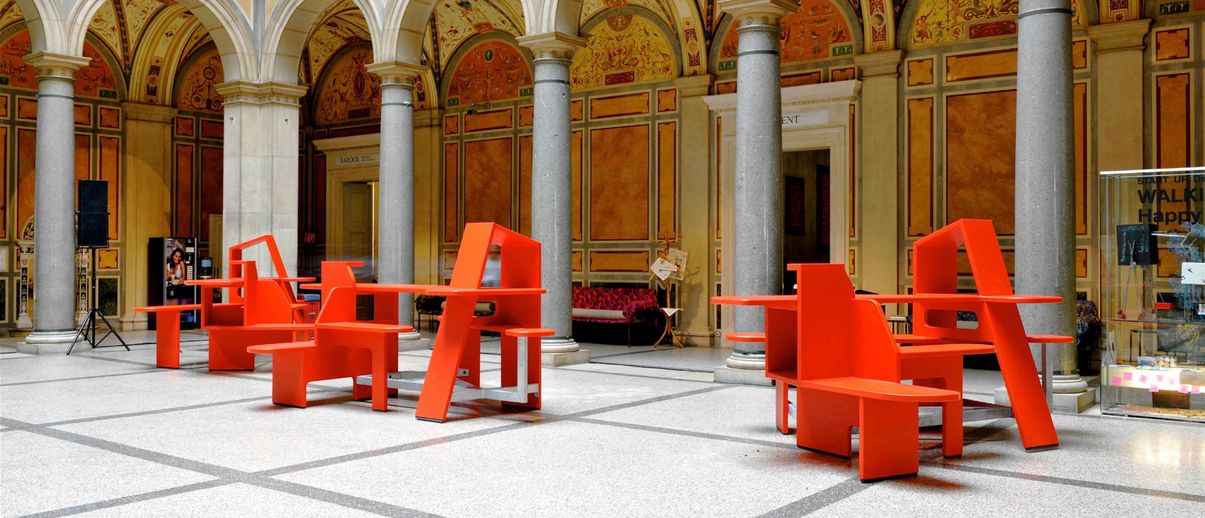In the borderland between typography and product design, the Austrian design group Walking-Chair has created a colorful universe of original prototypes which break up the traditional order of things, reducing functionalism to absurdity. Ever since 2002, Fidel Peugeot and Karl Emilio Pircher have, under the Walking-Chair label, shaken up the Viennese design scene; now, they were chosen by Ron Arad, on the occasion of his lecture and the presentation of his Rotator, for a START_UP presentation at the MAK. In the START_UP presentations shown in the new program line design> new strategies, developed by MAK and departure, experimental and innovative positions in the areas of product, furniture and industrial design are made visible and experienceable, with the goal of establishing a new design platform for young designers and ambitious producers in Vienna and of connecting the Austrian creative scene to the international network.