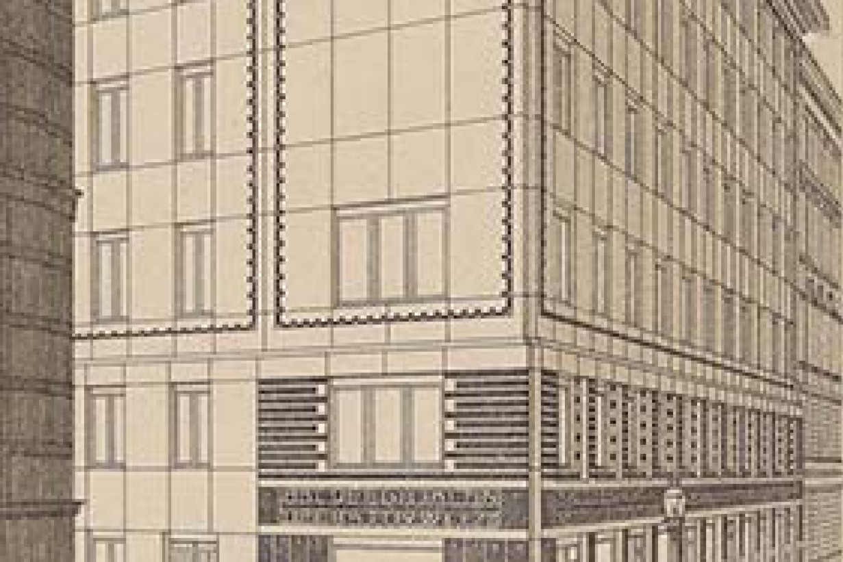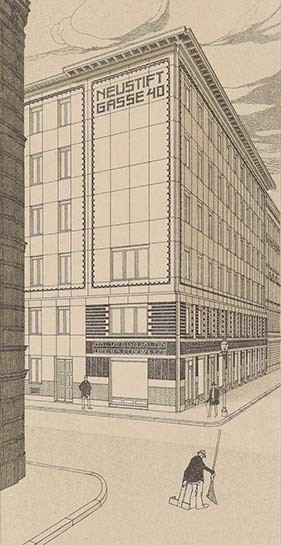 In the front: Otto Wagner, Façade reconstruction of the Die Zeit dispatch office, 1902. Following plans by Alfred Krischanitz and Otto Kapfinger, 1985, Wien Museum