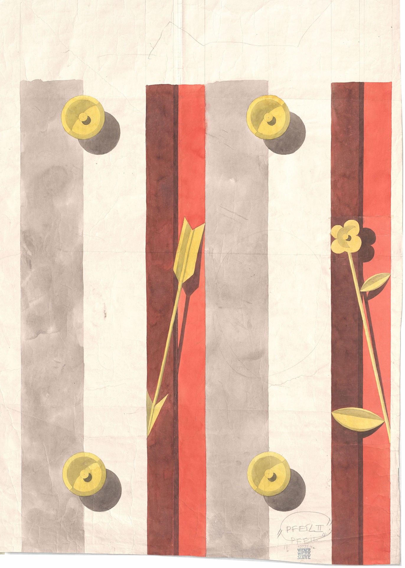 Dagobert Peche, Entwurf für die Wiener-Werkstätte-Tapete Pfeil, 1921 Bleistift, Gouache auf Papier MAK, KI 12715-6 © MAK