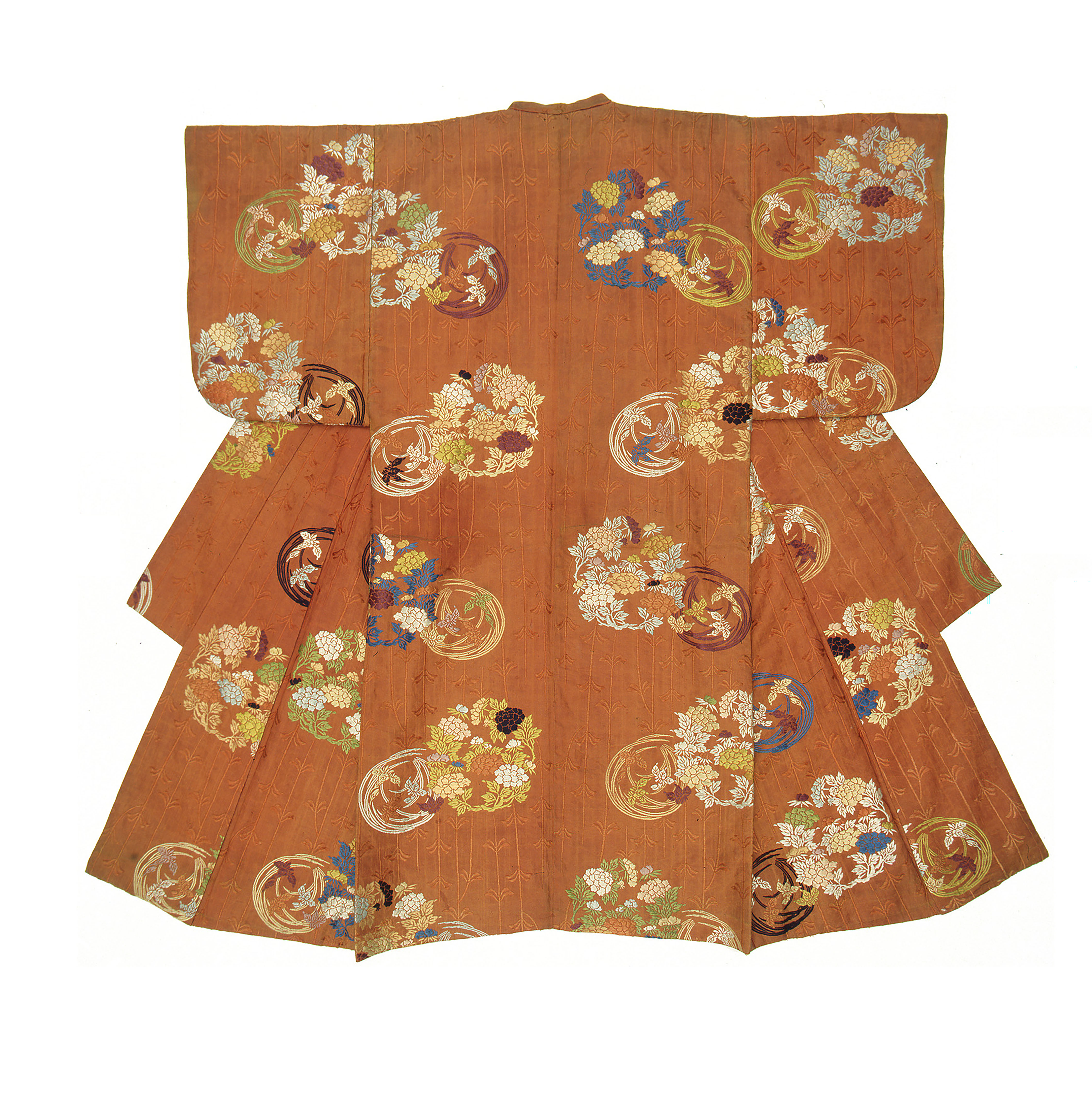 gefertigt aus ziegelroter, floral gemusterter Seide, Japan, 18. Jh.