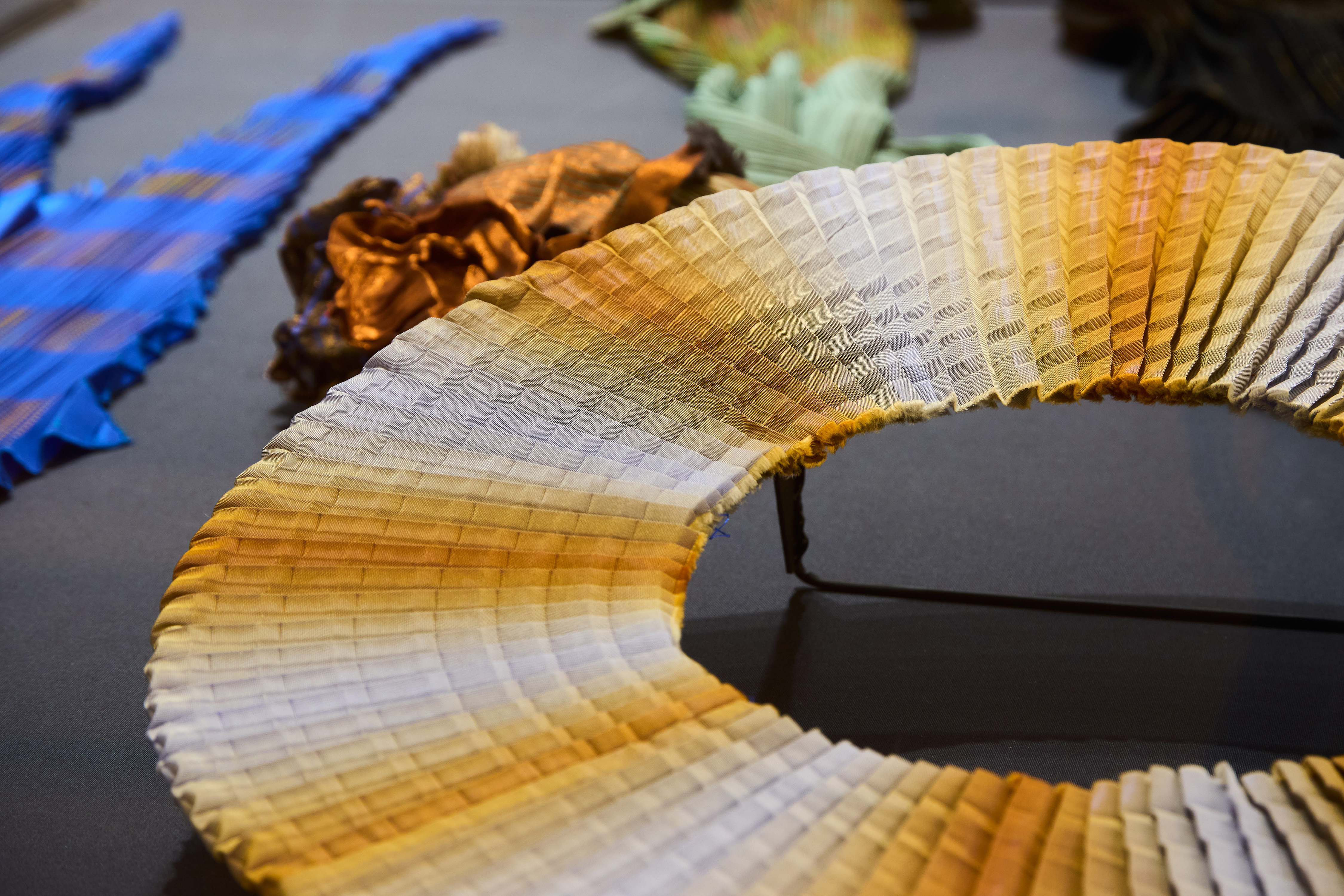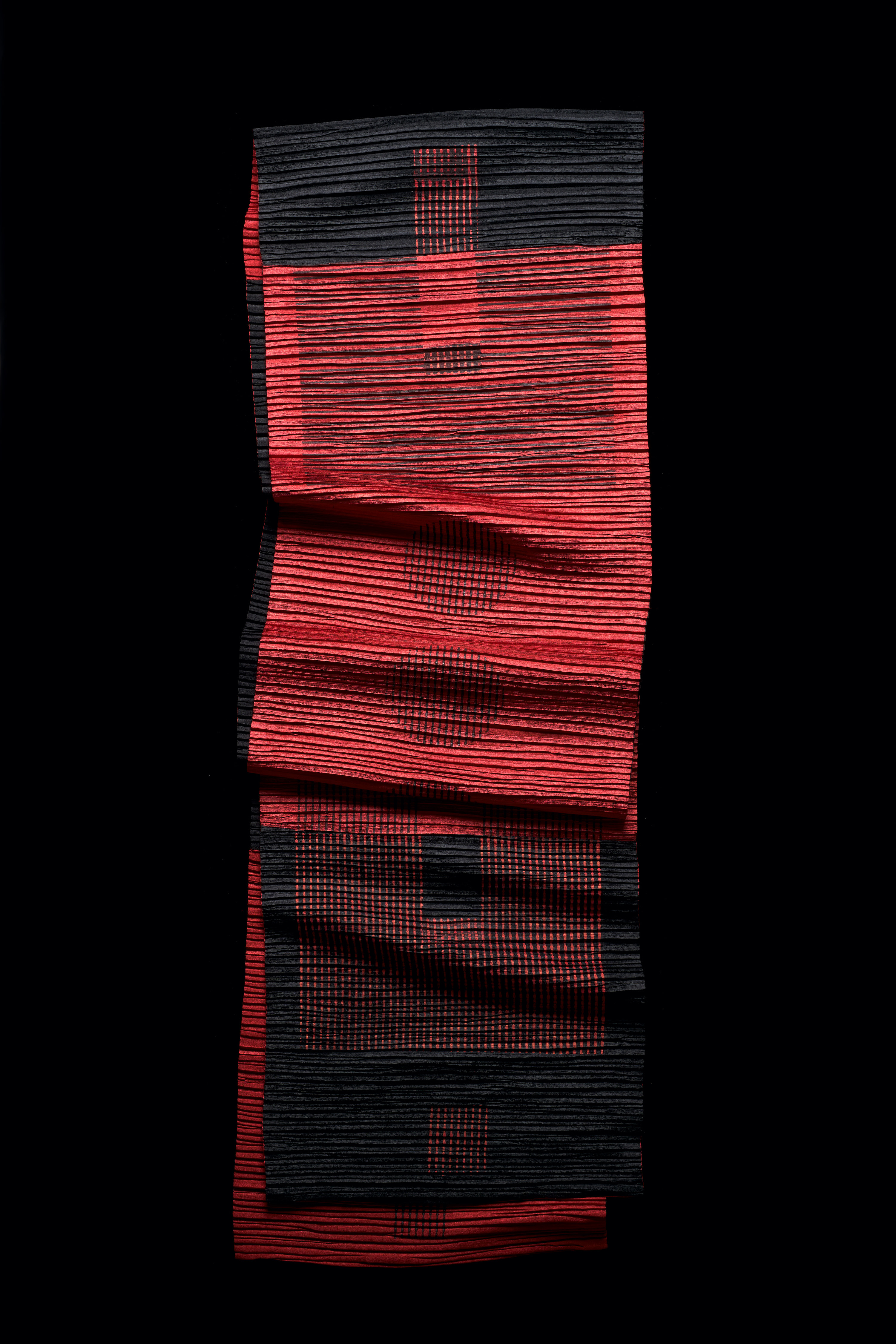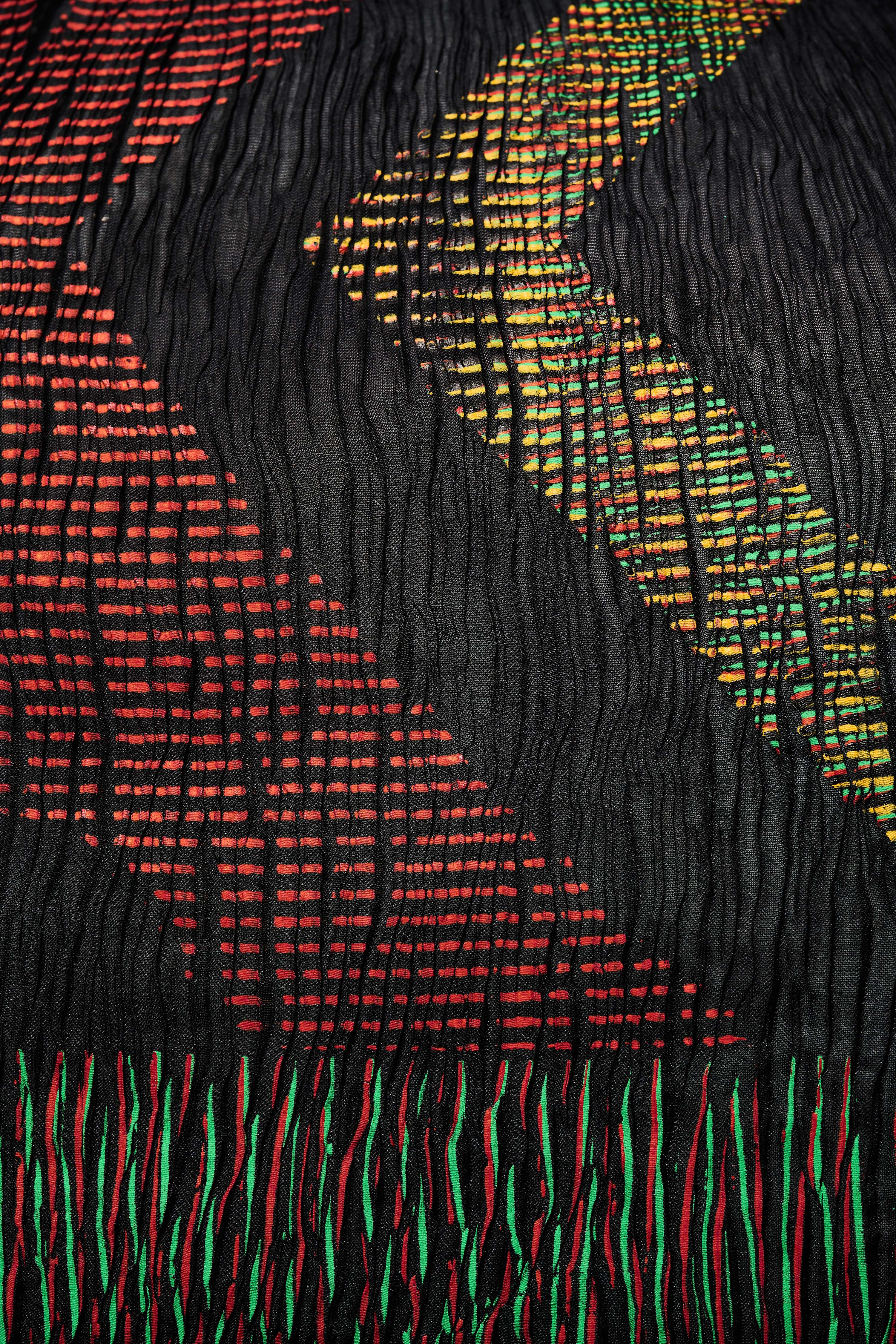 Ursi Fürtler, ohne Titel (Schal), 2022 Kunstfaser, plissiert, beidseitig bedruckt