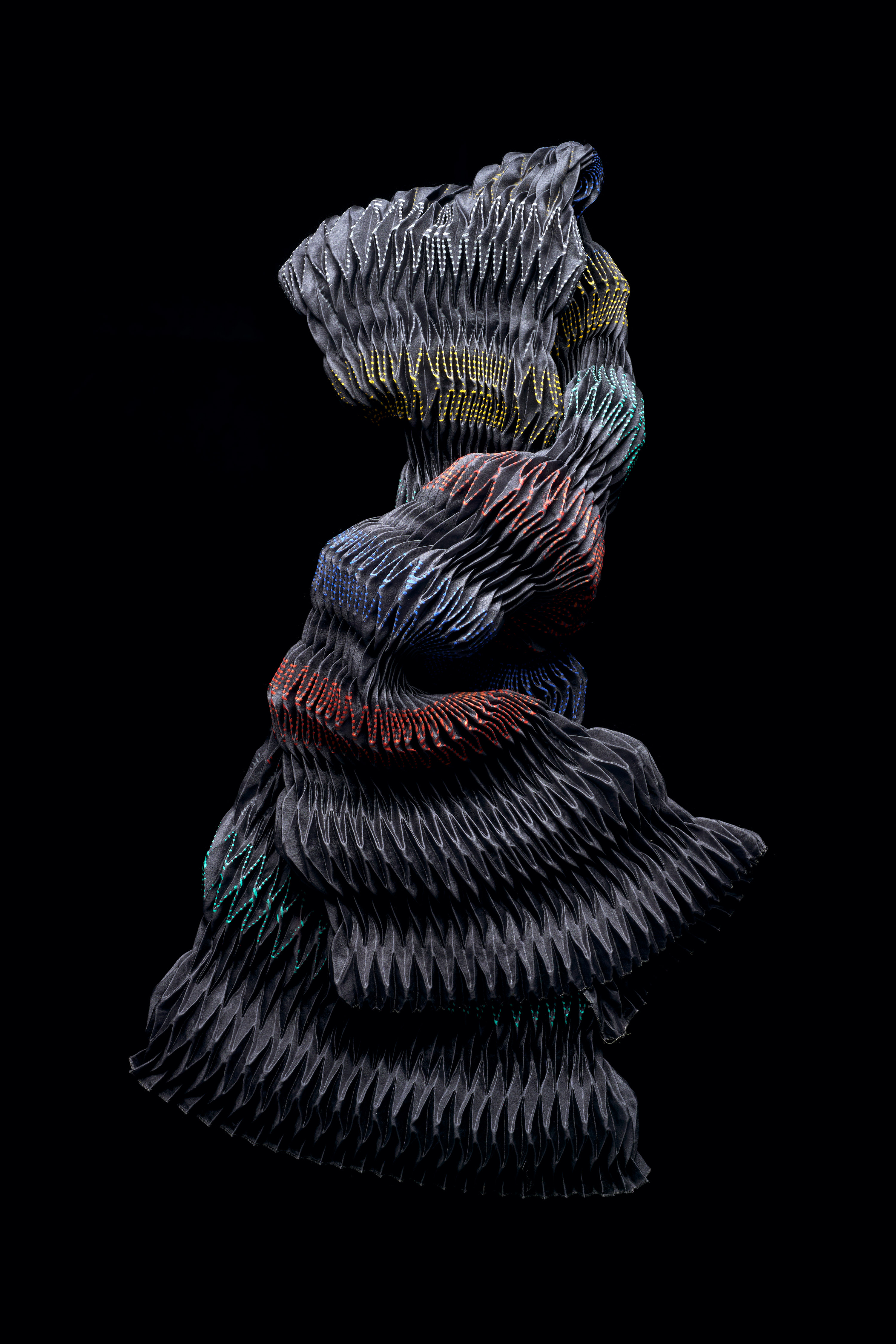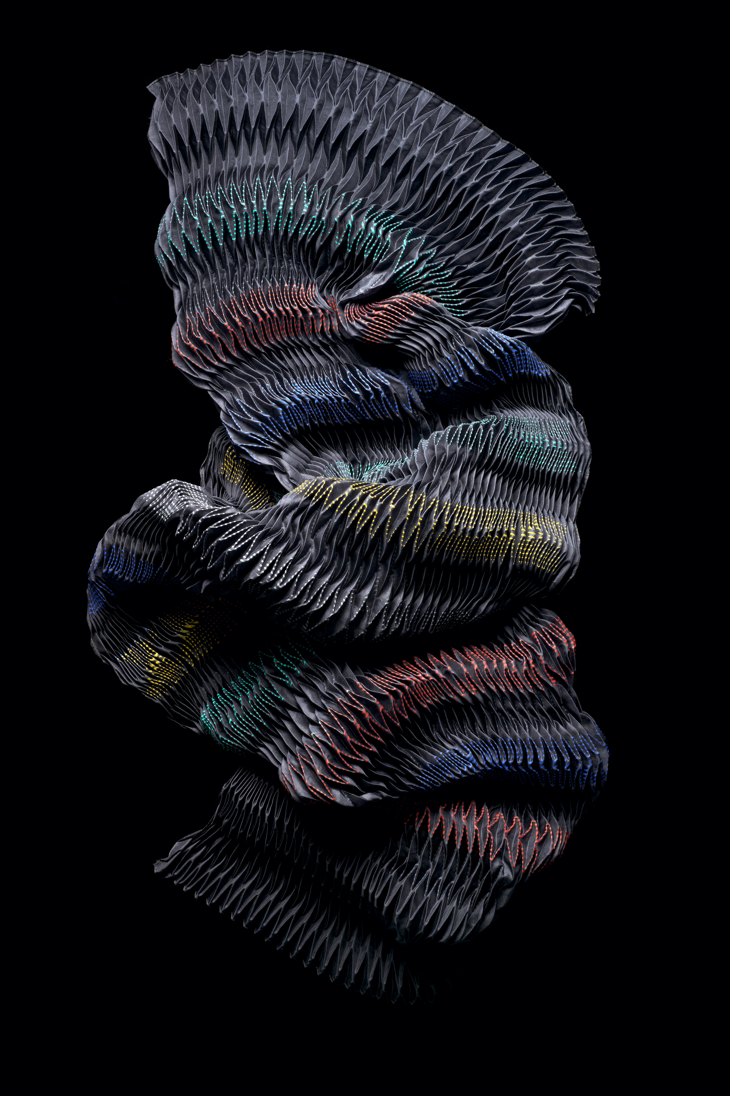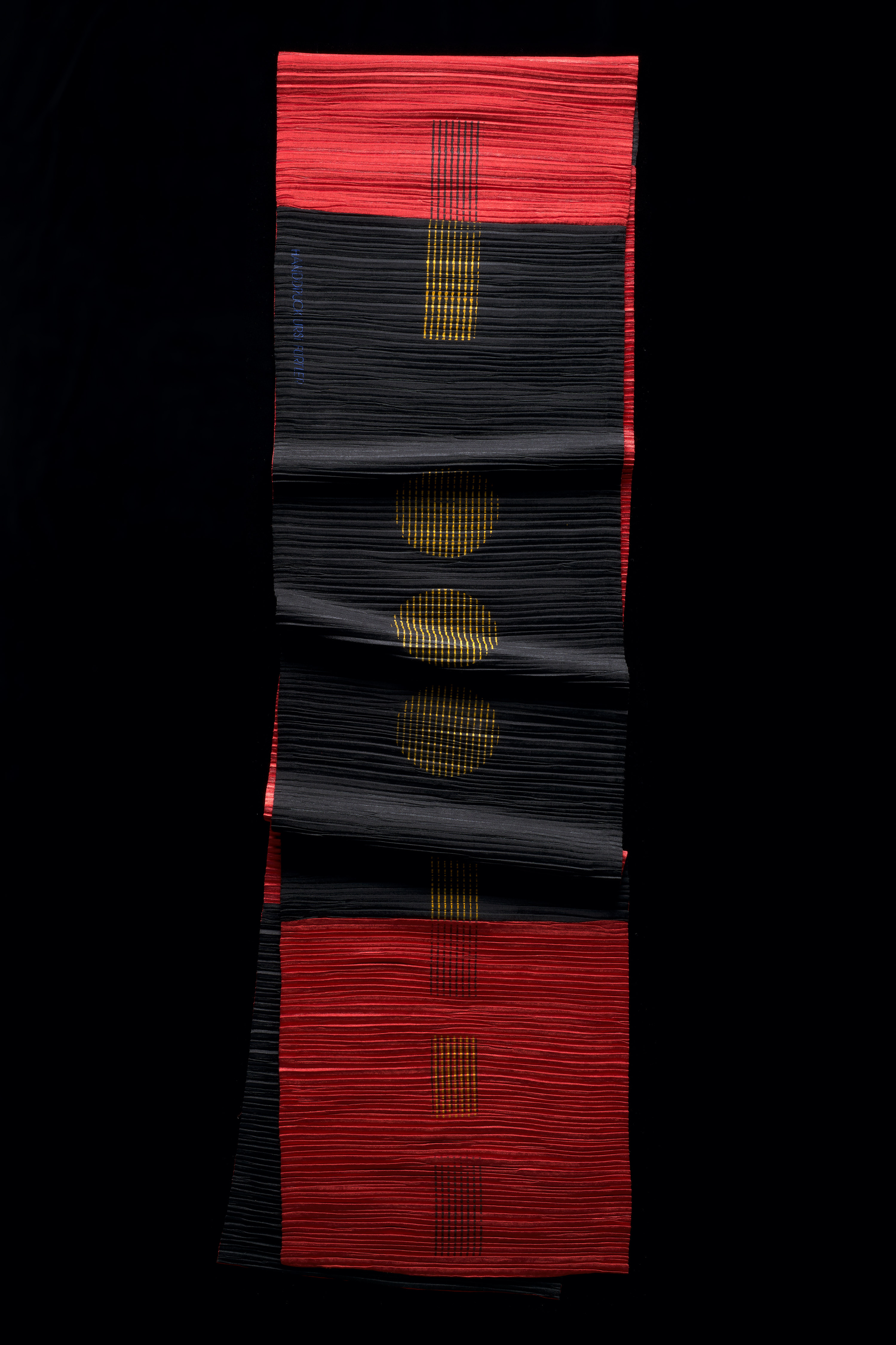 Ursi Fürtler, ohne Titel (Schal), 2022 Kunstfaser, plissiert, beidseitig bedruckt