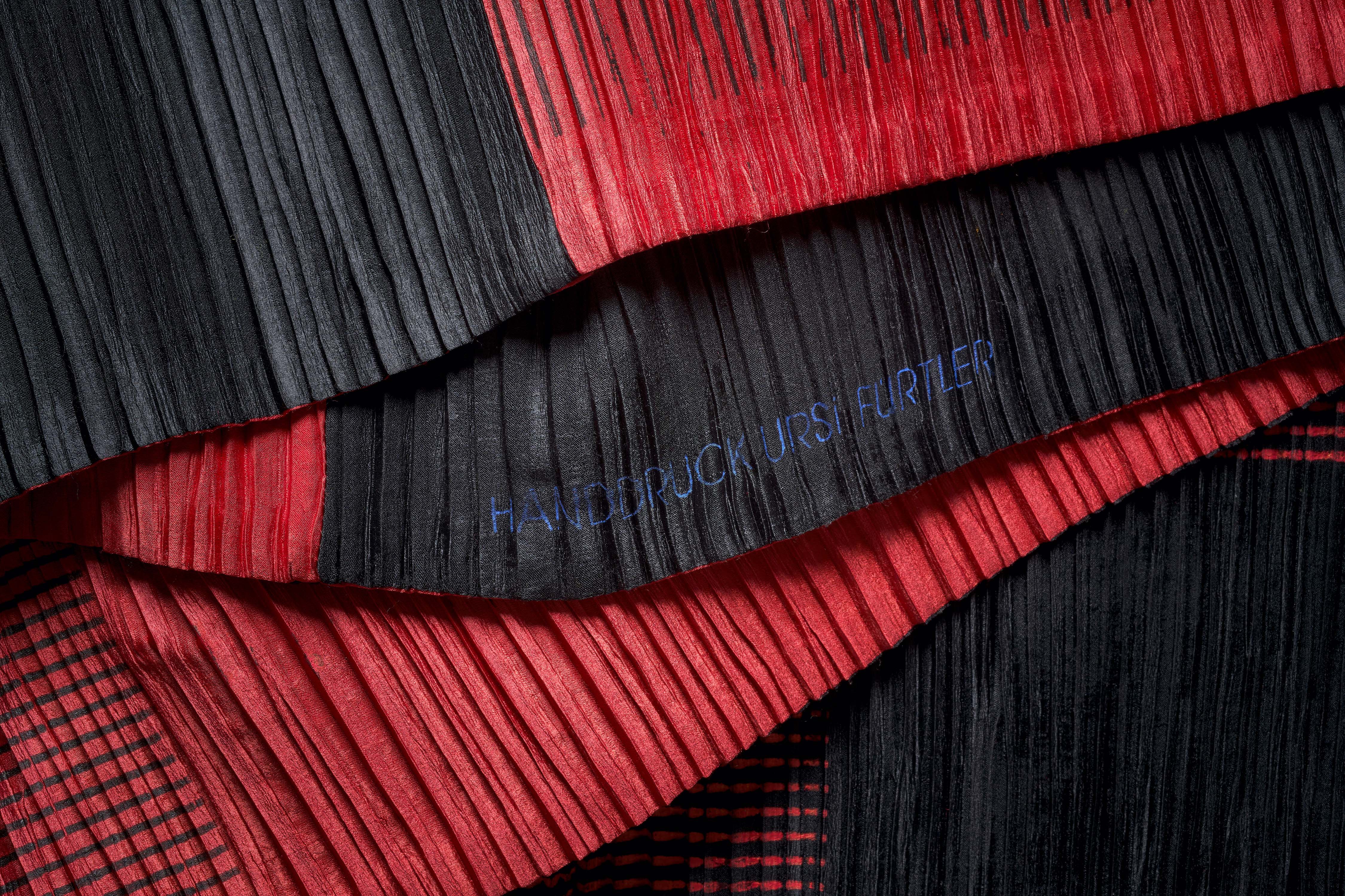 Ursi Fürtler, ohne Titel (Schal), um 2005 Seide, plissiert, beidseitig bedruckt