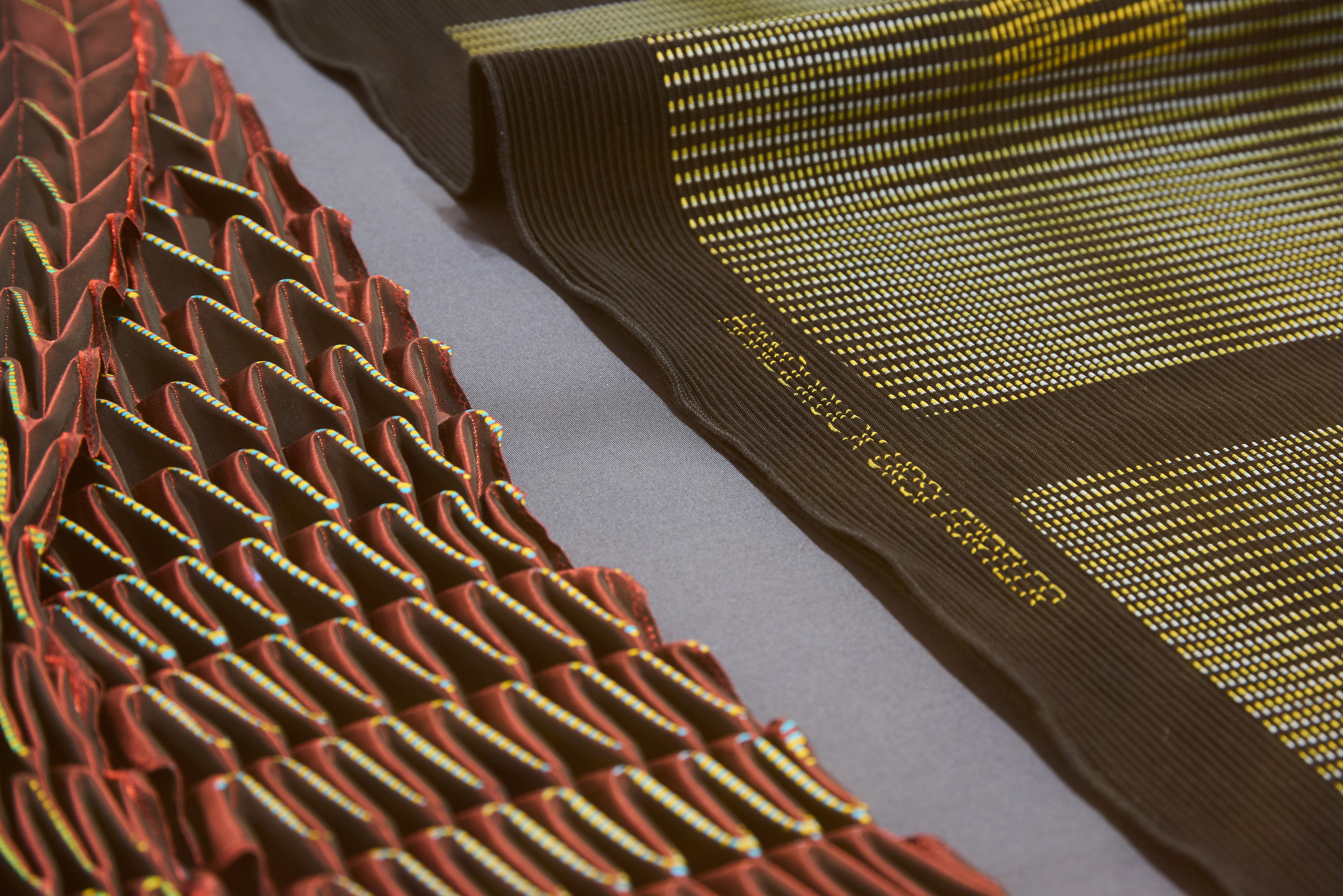 Ursi Fürtler, ohne Titel (Wandbehang), 2010 Kunstfaser, plissiert, bedruckt