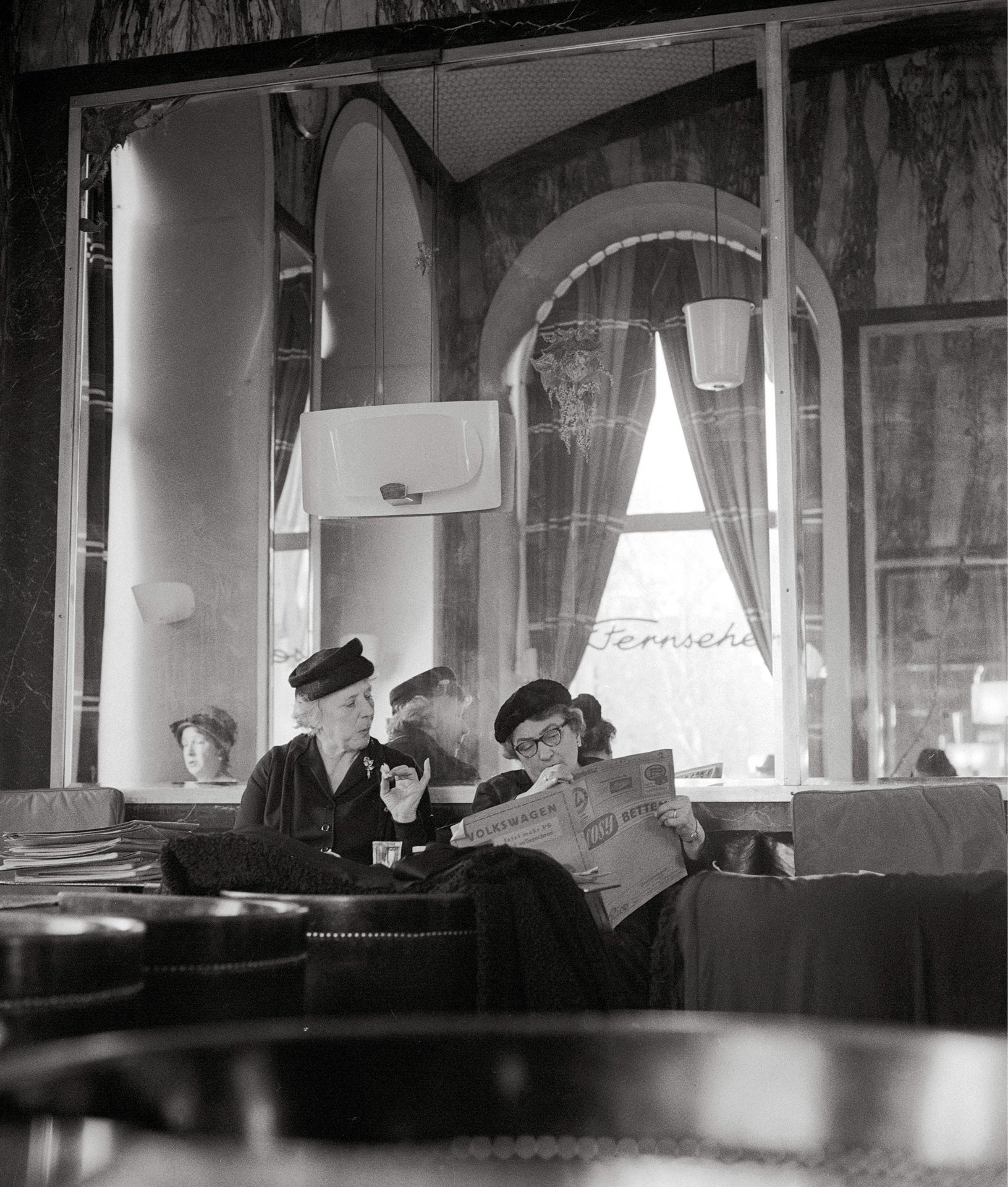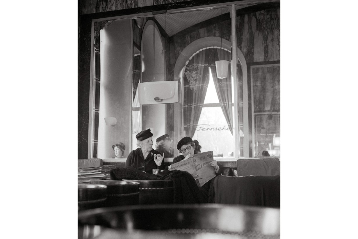 Barbara Pflaum, „Keineswegs ein Ort des Lasters, sondern die Zuflucht der Schlaflosen und Nachtarbeiter: das kleine Nachtcafé Schwarzenberg“, 1961 Silbergelatineabzug © APA-Images / brandstaetter images / Barbara Pflaum
