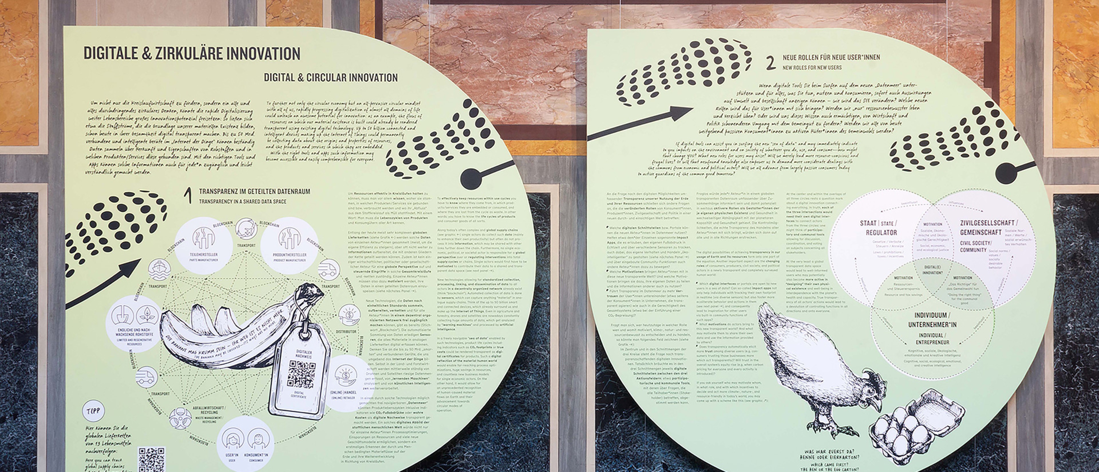 Parallel zu diesem Schwerpunktprojekt erfolgte eine Ideenfindung, mit welchen digitalen Ansätzen die Verankerung der Kreislaufgesellschaft vorangetrieben werden kann. Deren Ergebnisse werden auf neun Schautafeln aufbereitet, die von Christian Schienerl, Grafikdesigner und Buchautor, inhaltlich und grafisch gestaltet wurden.