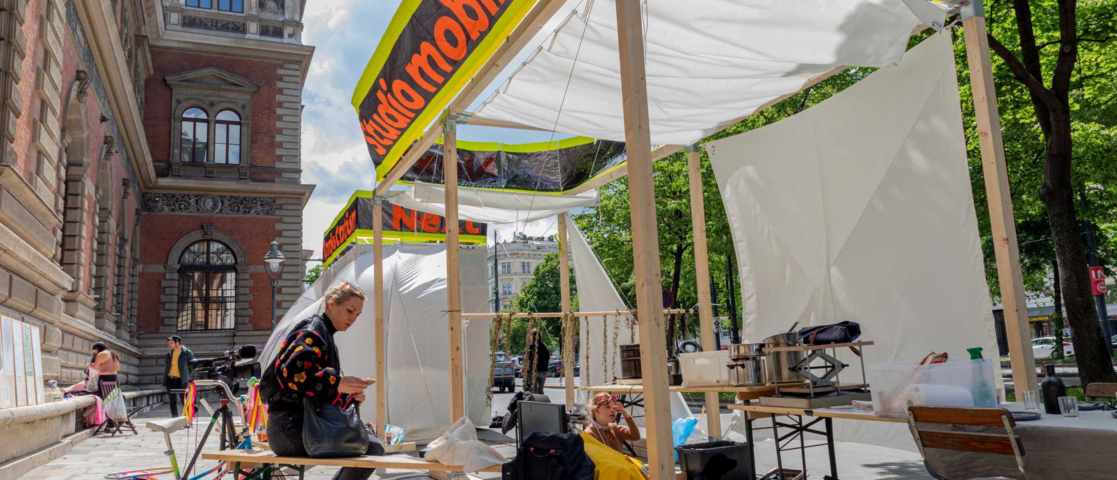 EAT LOVE. Essensräume von morgen nimmt dafür die Form eines Prototypen der Tankstelle im postfossilen Zeitalter an. Die studio mobil / think tank station findet auch einen Widerhall in der im MAK gezeigten und von Hubert Klumpner co-kuratierten Ausstellung CLIMATE CARE. Reimagining Shared Planetary Futures. Neue Ideen tanken und sich selbst einbringen können die Besucherinnen und Besucher nicht nur auf der Biennale, sondern auch an verschiedenen Orten in Wien, an denen das Projekt während der Laufzeit der Vienna Biennale Halt macht.