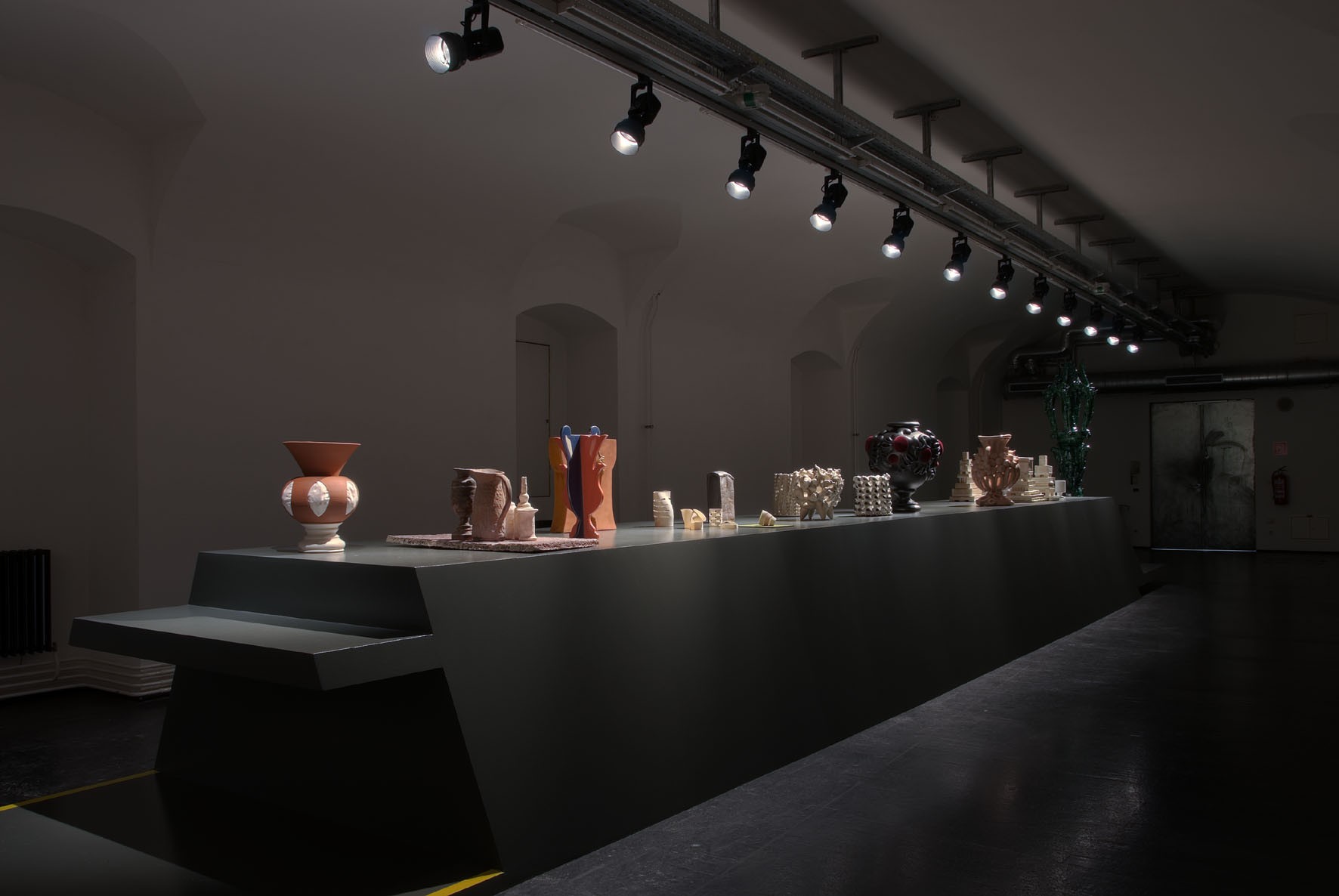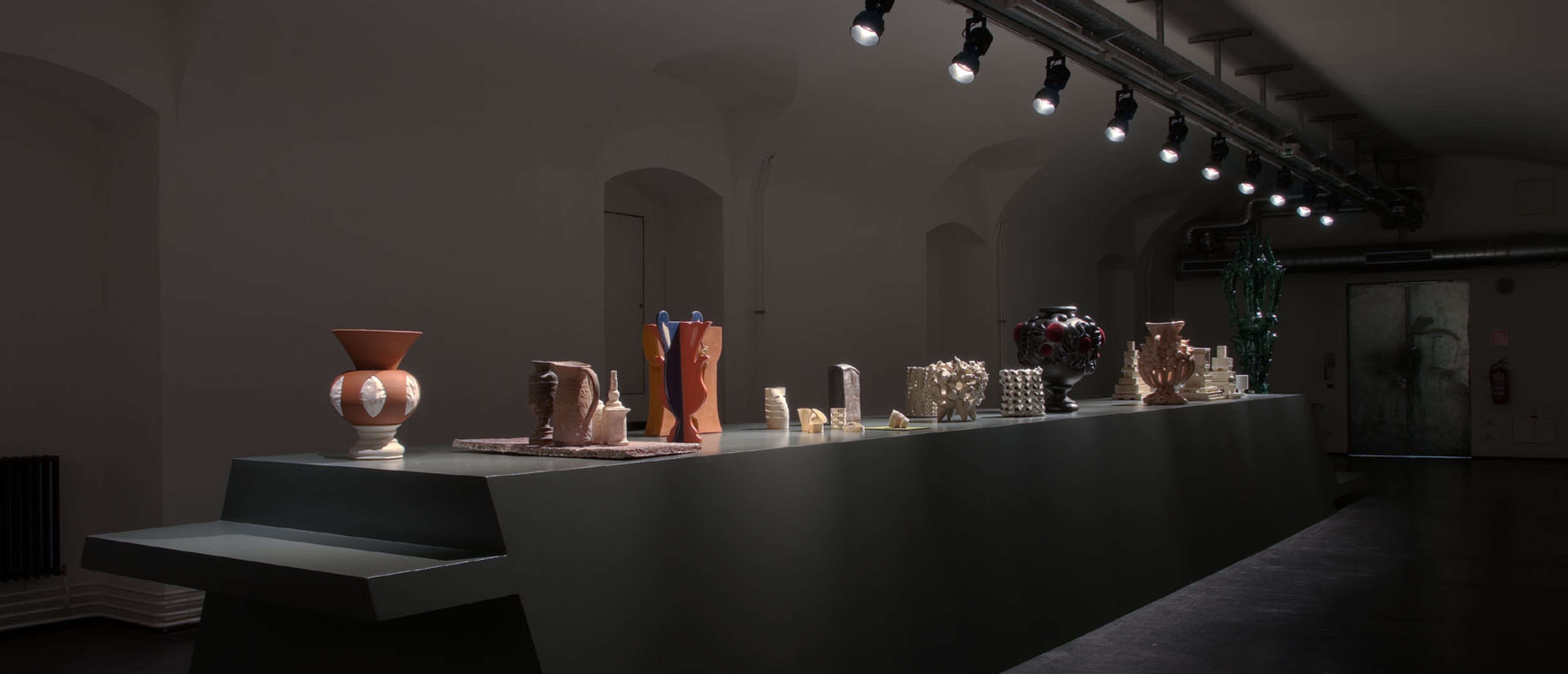 Bewusst wurden acht sehr unterschiedliche Künstler eingeladen, die sehr differenzierte Beiträge zu dem weit gefassten Thema "Gefäß" geschaffen haben. Spielerisch, teils ironisch findet das Thema in den Arbeiten seinen Niederschlag und hinterfragt dieses urkeramische Thema von Gefäß und Hohlraum. Historisches Vokabular wird zitiert ohne dessen Inhalte übernehmen zu wollen und neu interpretiert. Die keramische Tradition wird dabei nicht versucht zu verleugnen. Aspekte wie das Verhalten des Materials selbst und seine Eigenschaften werden ebenso behandelt wie der Schaffensprozess oder Themen wie Individualität, Raumerfahrungen, das dekorative Element oder Ornament oder das Paar Präsentation und Repräsentation.