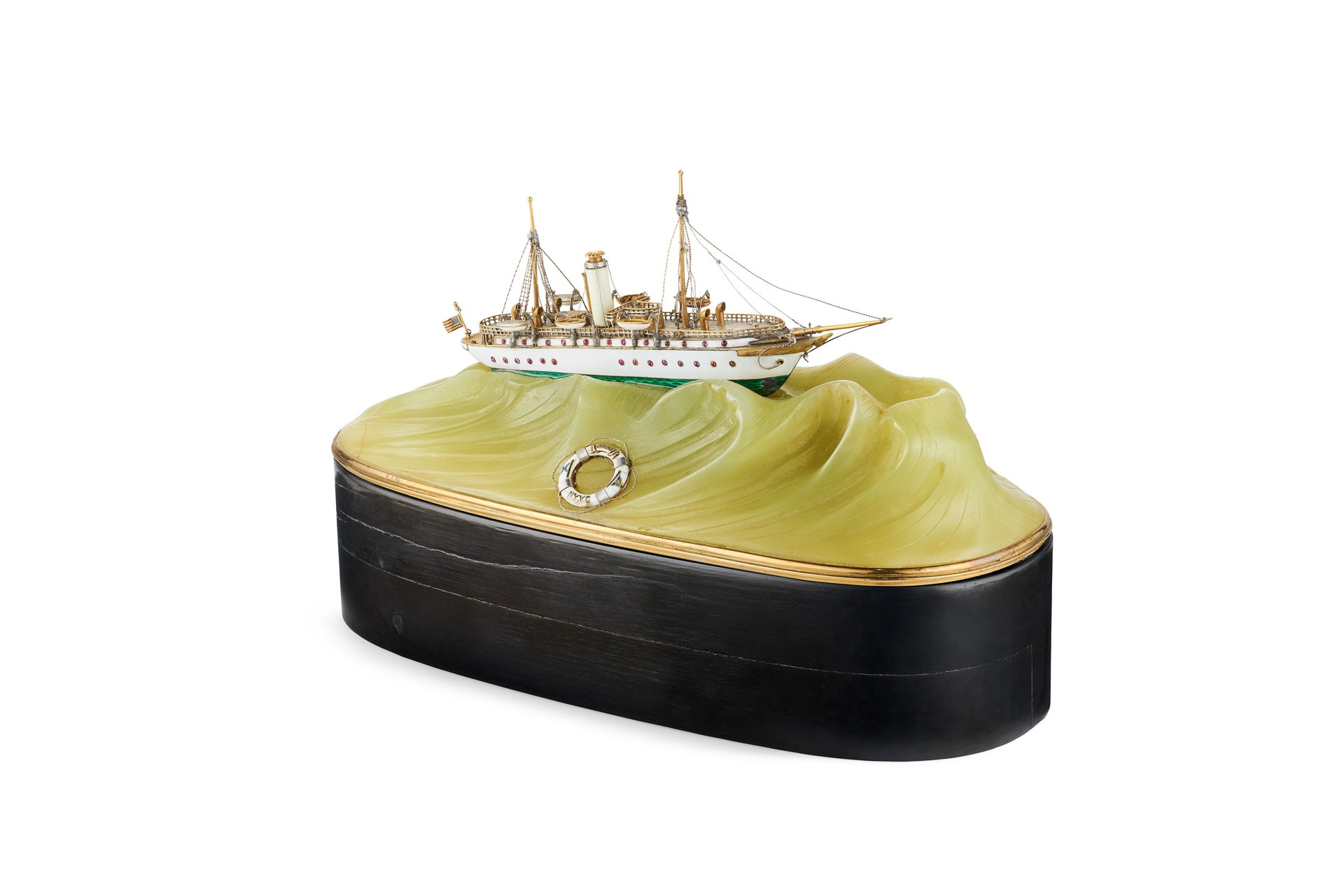 Kleinmaßstäbliches Modell der Yacht Varuna, 1906 Gelbgold, Silber, Jaspis, Holz, Email © Van Cleef & Arpels Collection
