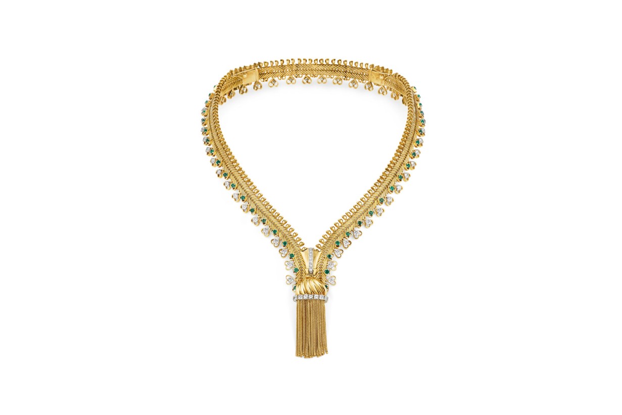 Collier Zip, 1955, Verwandelbar in ein Armband, Gelbgold, Platin, Smaragde, Diamanten © Van Cleef & Arpels Collection